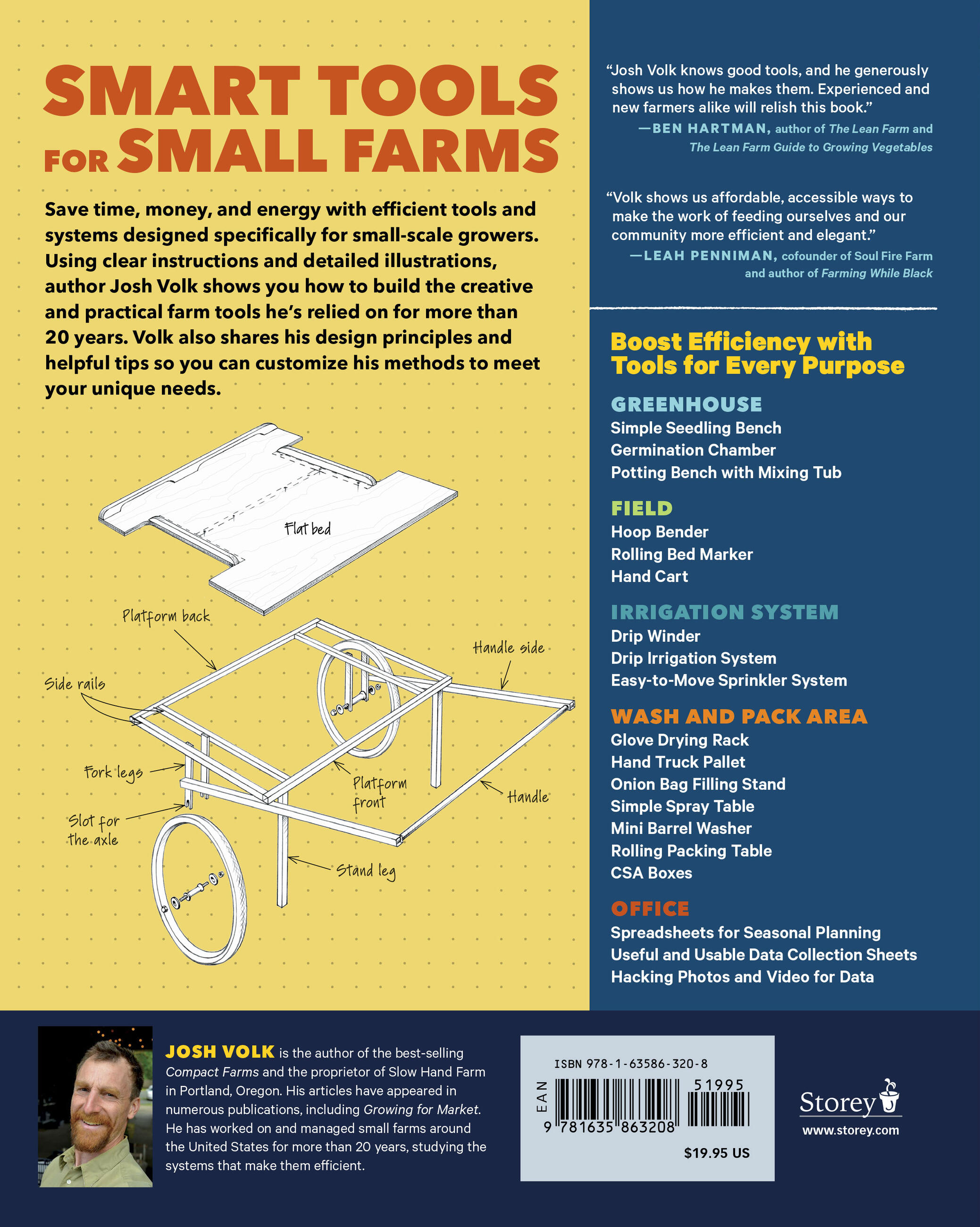 “The right tool can remove drudgery, increase productivity, and make farm work enjoyable. Josh Volk knows good tools, and here he generously shows us how he makes them. Experienced and new farmers alike will relish what’s inside this book.” — Ben Hartman, author of The Lean Farm and The Lean Farm Guide to Growing Vegetables