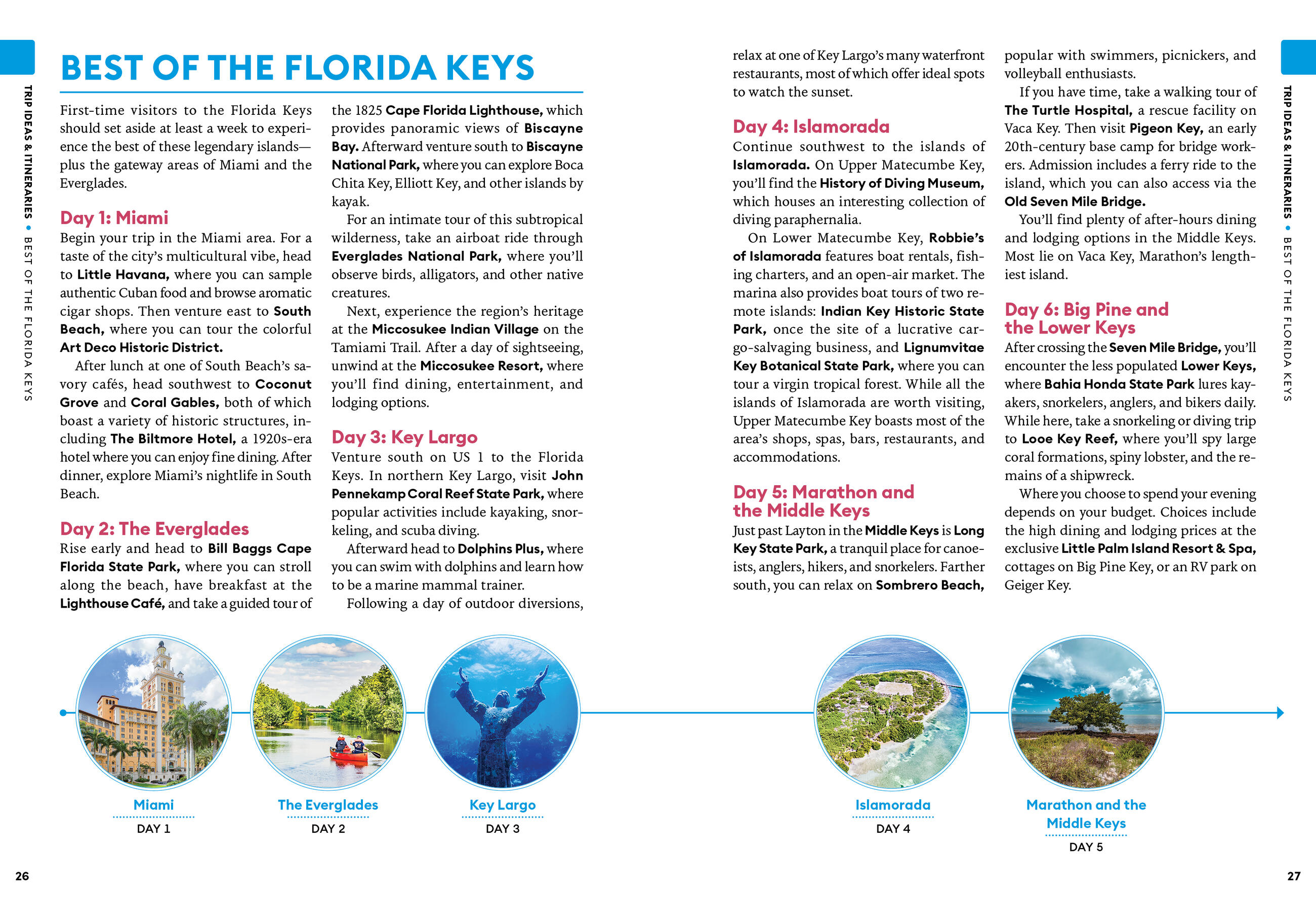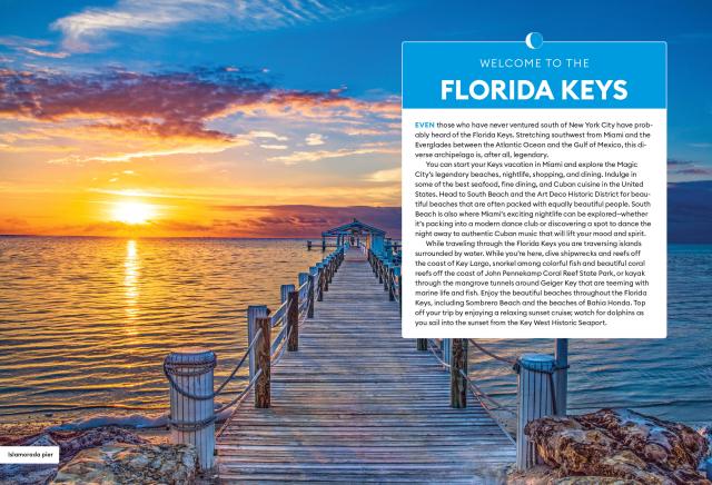 - Strategic itineraries for water sports lovers, wildlife fanatics, families with kids, foodies, and more, including a Key West getaway and a week-long road trip along the Overseas Highway