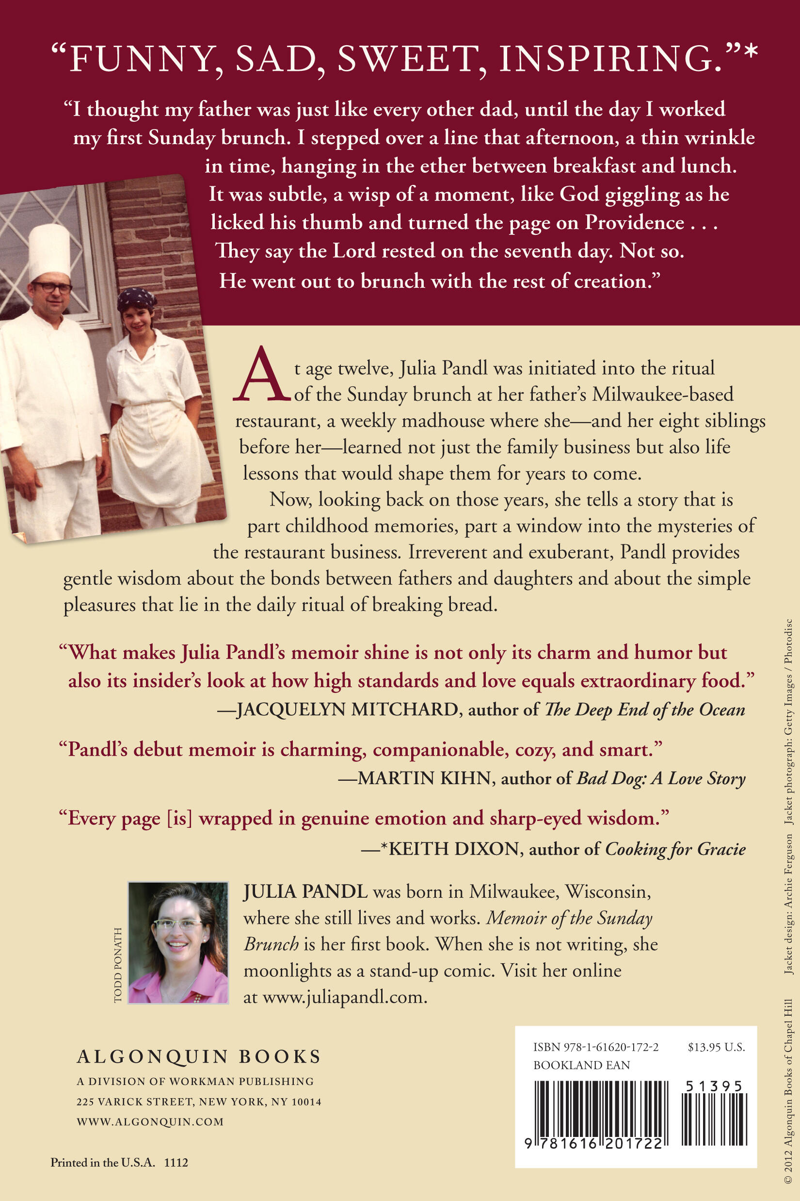 Part coming-of-age story a` la The Tender Bar, part win- dow into the mysteries of the restaurant business a` la Kitchen Confidential, Julie Pandl provides tender wisdom about the bonds between fathers and daughters and about the simple pleasures that lie in the daily ritual of breaking bread. This honest and exuberant memoir marks the debut of a writer who discovers that humor exists in even the smallest details of our lives and that the biggest moments we ever experience can happen behind the pancake station at the Sunday brunch.