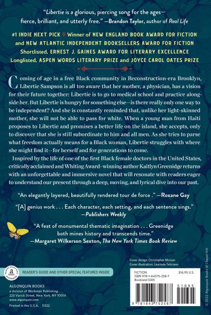 “Fiercely compelling, and told in a singular, lyrical voice, Libertie is a novel that lives in a specific historical time—the Reconstruction Era—but offers insight into the very modern struggles that still exist surrounding identity, family, love, and freedom . . . This is a novel of struggle and triumph, exhaustion and perseverance, rooted in history, but transcendent of it; another masterwork by Kaitlyn Greenidge.”