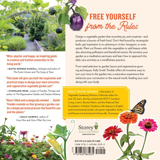 "Kelly Smith Trimble’s The Creative Vegetable Gardener isn’t concerned so much with crop yields or pest control as it is with the sheer pleasure and wellness that gardening can bring. She encourages readers to garden for the mindfulness and surprise of it and counsels them to not get hung up on how many tomatoes they produce. Accessible for beginners but poised to shake up the thinking of the most seasoned dirt-gardener, Trimble’s new book covers lots of ground."BookPage, starred review
