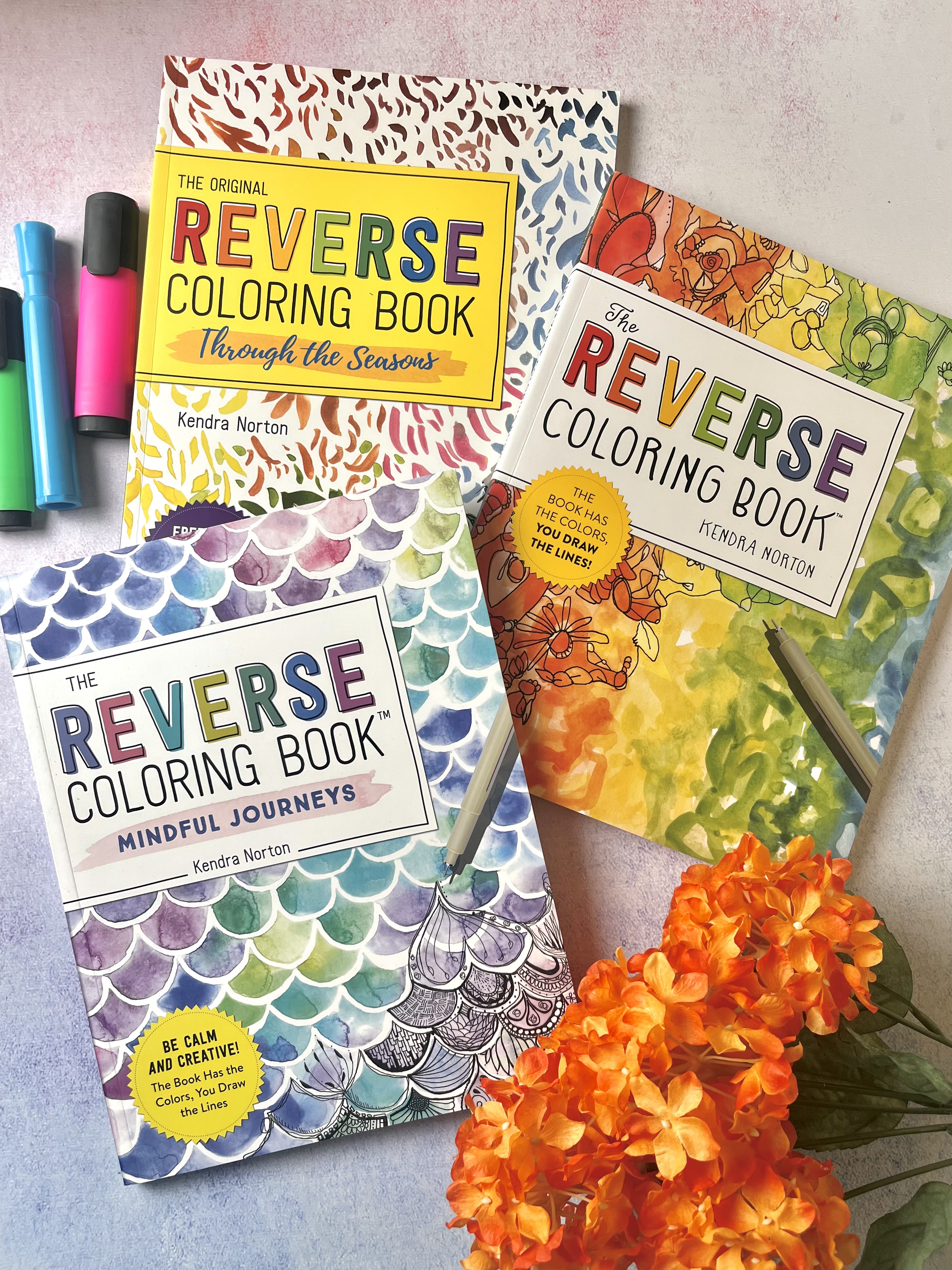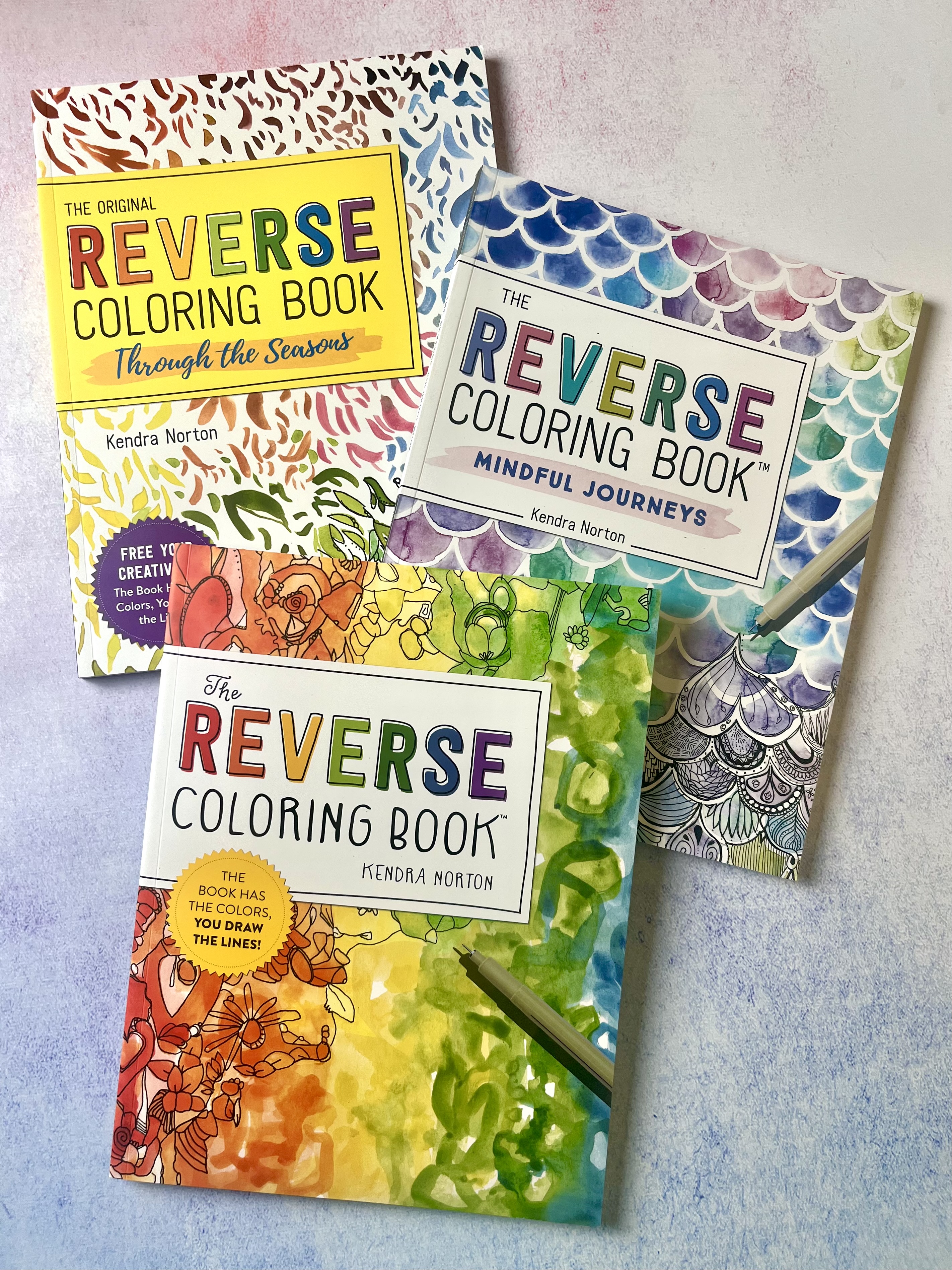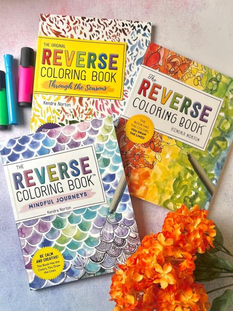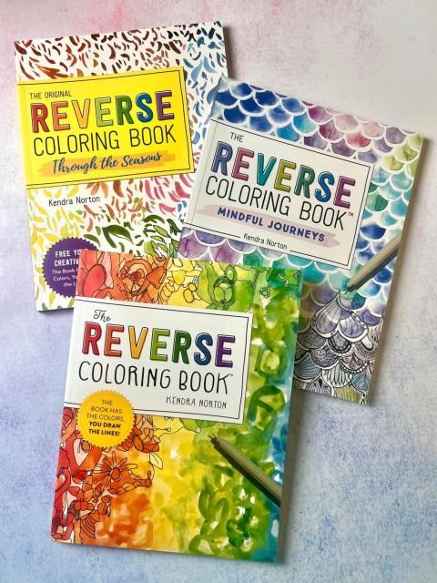 This three-book set includes The Reverse Coloring Book™, The Reverse Coloring Book: Through the Seasons, and The Reverse Coloring Book: Mindful Journeys each with 50 original works of art, printed on sturdy paper that’s single-sided and perforated. All you need is a pen!