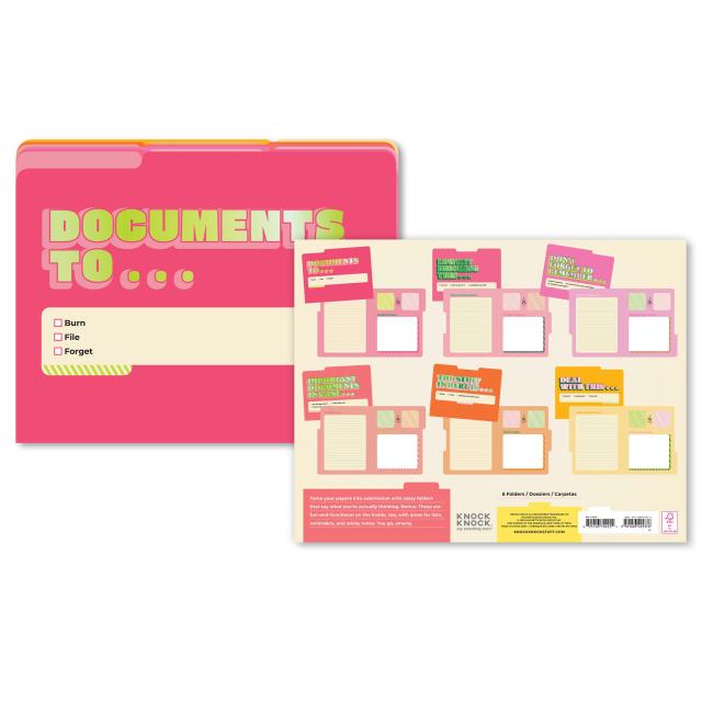 Each folder in this set features a uniquely witty message and colorful design with foil stamping, perfect for your home office, workplace, desk, countertop (or backpack!). Each folder is also printed on the inside with dedicated spots for notes, project management, doodles & more!