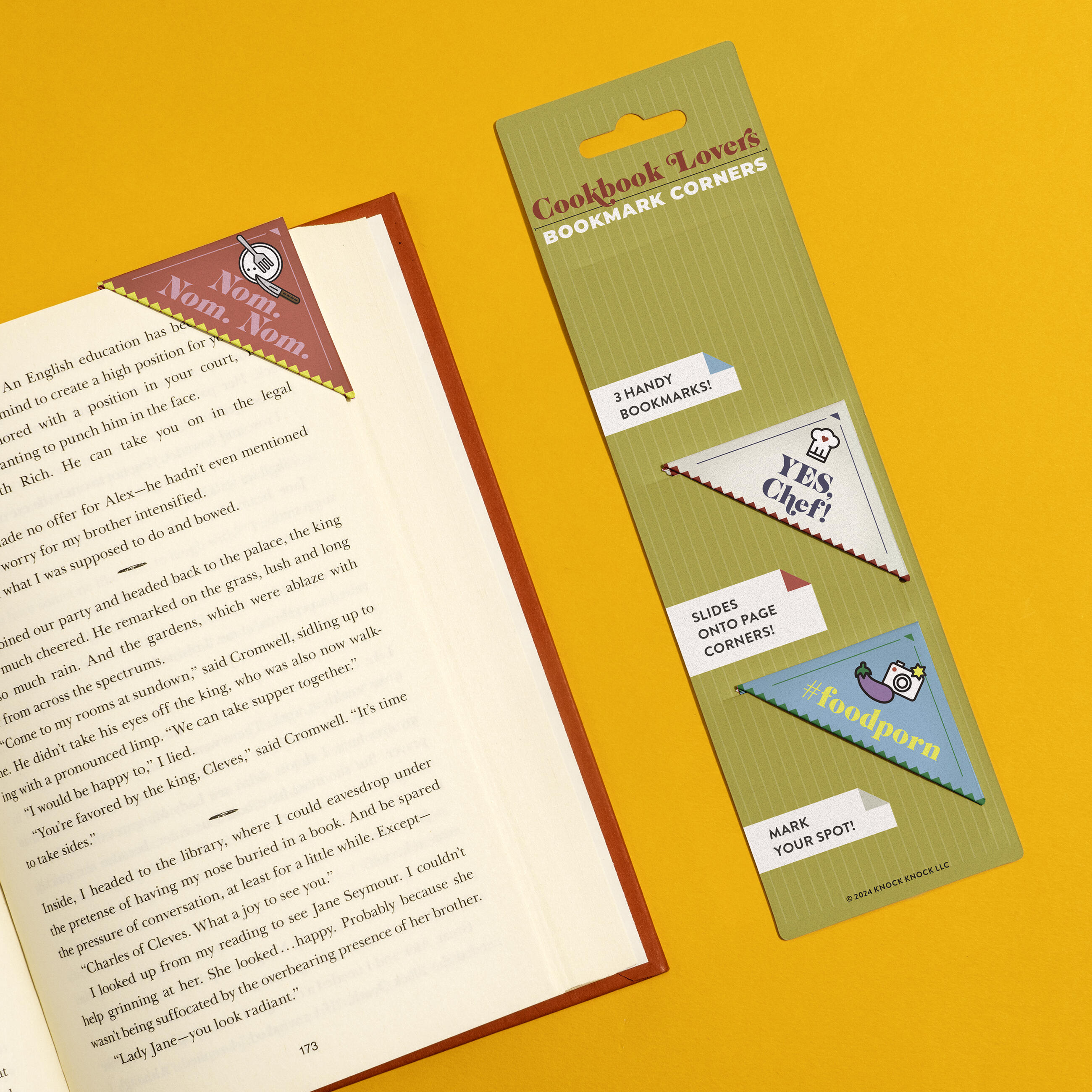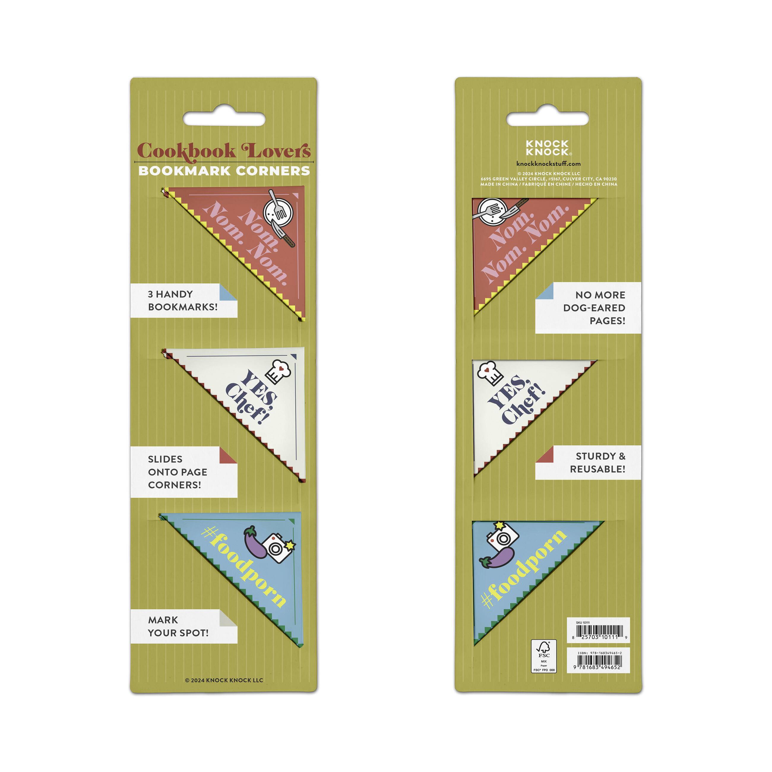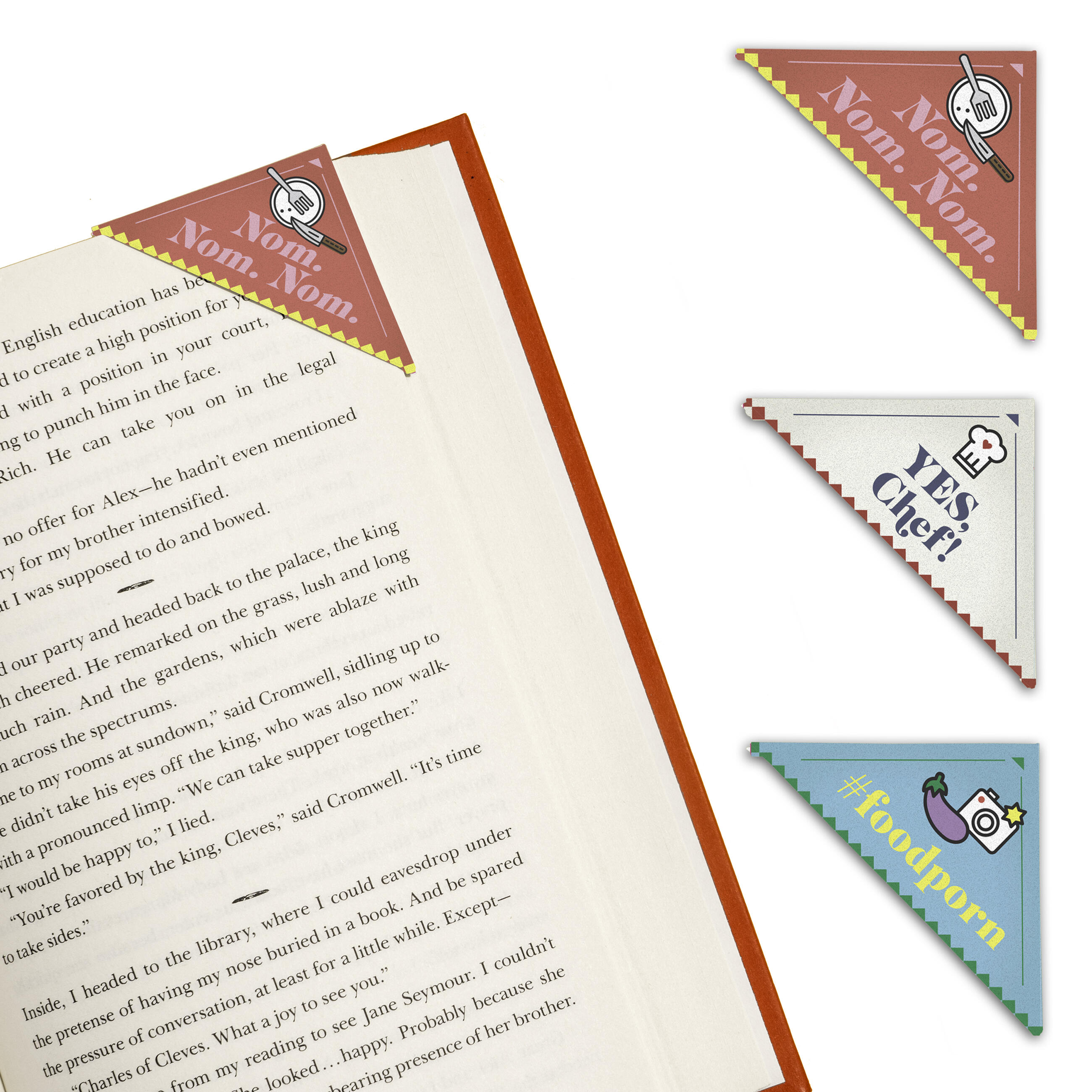 Book lovers agree, you can never have too many books . . . or bookmarks! These unique corner bookmarks hold your spot, prevent dog-ears, and let you self-identify as a committed cookbook connoisseur!