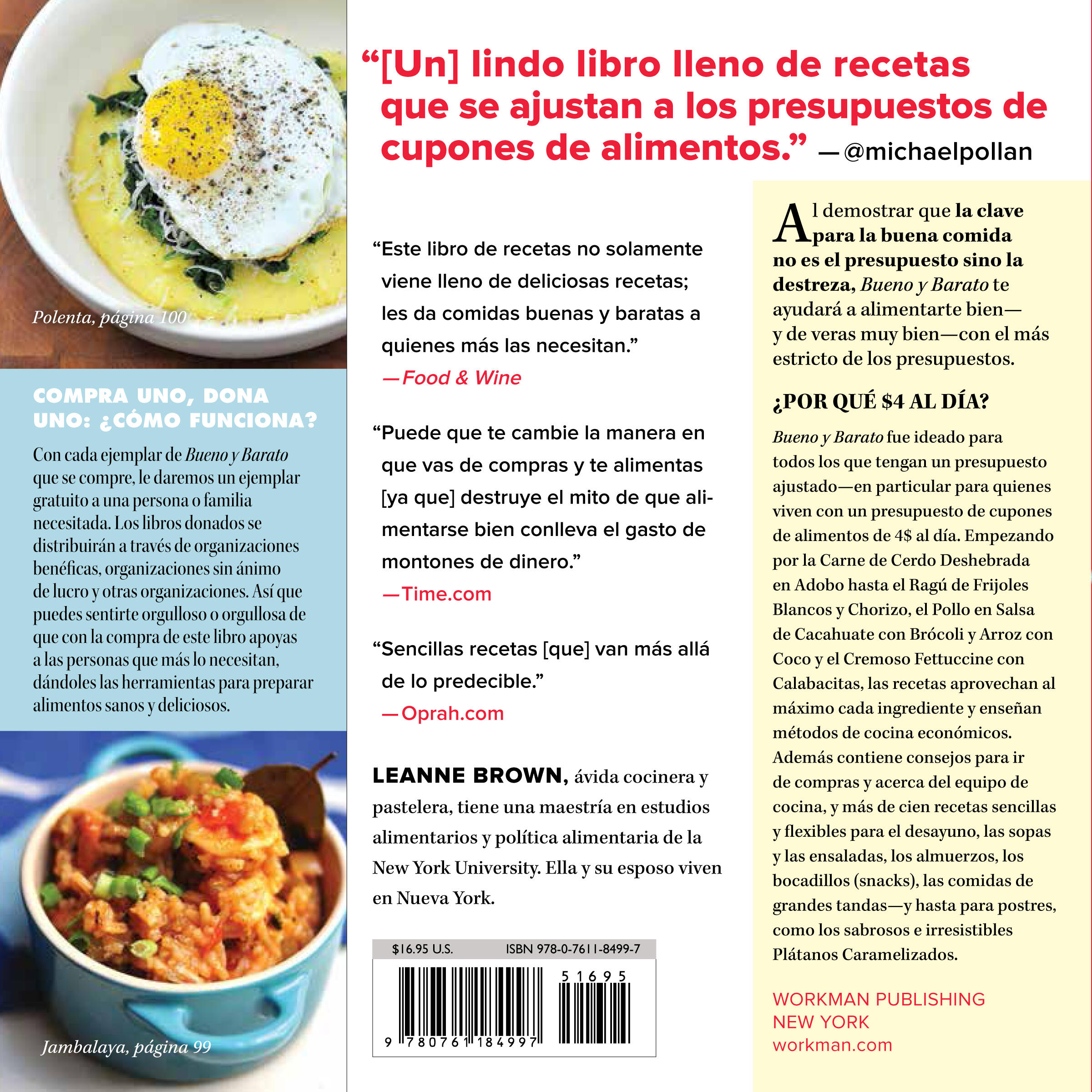 In addition, for every copy of Bueno y Barato purchased, Workman Publishing donates a second copy to a person or family in need.
