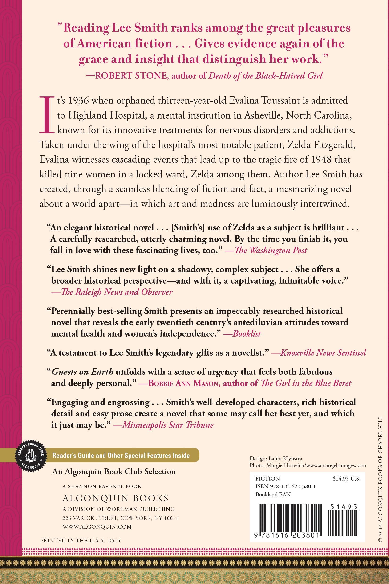 “[An] elegant historical novel . . . Lee Smith is an assured and accomplished writer, and her use of Zelda as a subject in Guests on Earth is brilliant . . . This is a carefully researched, utterly charming novel. By the time you finish it, you fall in love with these fascinating lives, too.” I>The Washington PostReview quotes
