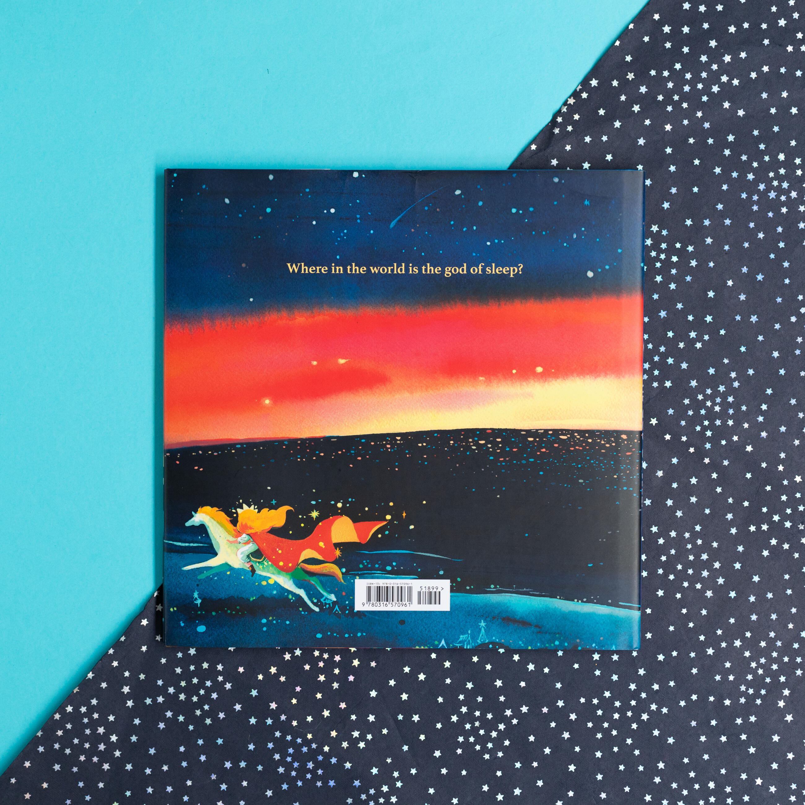 In this rhyming bedtime book, the god of sun is winding down and preparing for nightfall. But her successor, the god of sleep, is missing! To bring a sound slumber to the world, the sun god journeys to find that elusive, restful god, and meets all sorts of clever characters along the way.