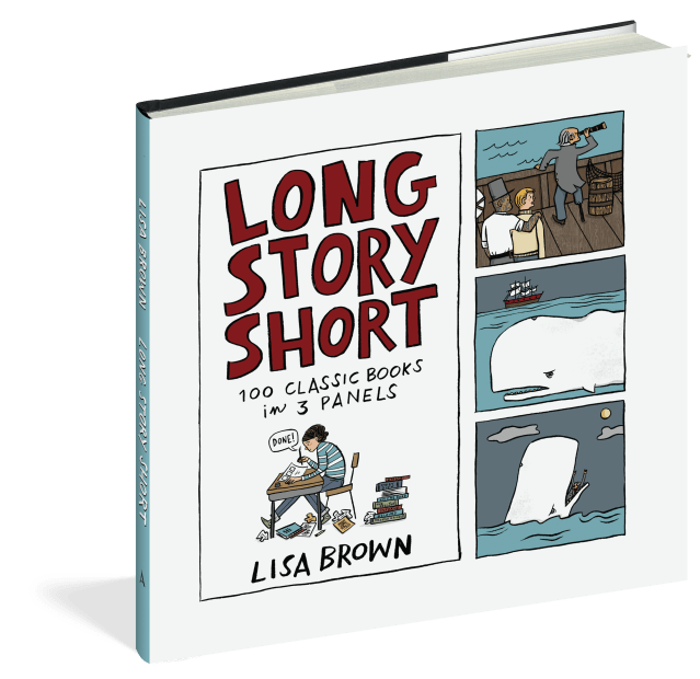 Bestselling illustrator Lisa Brown (The Airport Book; Baby, Mix Me a Drink) did her homework. Long Story Short offers 100 pithy and skewering three-panel literary summaries, from curriculum classics like Don Quixote, Lord of the Flies, and Jane Eyre to modern favorites like Beloved, The Brief Wondrous Life of Oscar Wao, and Atonement, conveniently organized by subjects including “Love,” “Sex,” “Death,” and “Female Trouble.” Lisa Brown’s Long Story Short is the perfect way to turn a traipse through what your English teacher called “the canon” into a frolic—or to happily cram for the next occasion that requires you to appear bookish and well-read.