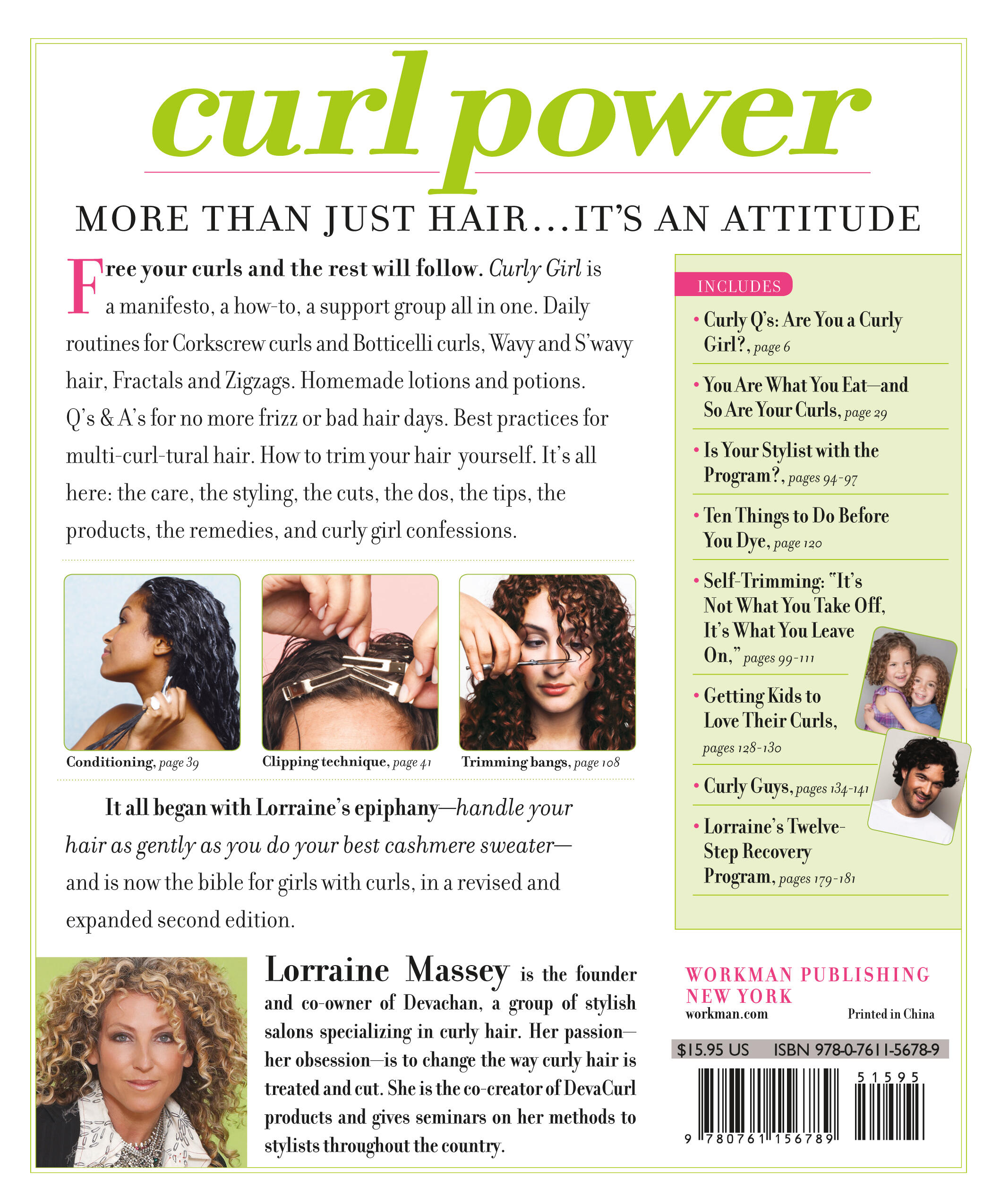 Say no to shampoo, unplug the dryer, and kiss frizz and bad hair days good-bye. Curly Girl is the surprising bible for those with naturally curly or wavy hair and a desire to celebrate it, from hair guru Lorraine Massey. It’s all here: Daily routines for corkscrew, Botticelli, fractal, and wavy curls. Homemade lotions and potions for locking in moisture. Expert tips on caring for African American hair. Fabulous dos for weddings and special occasions. How to trim your hair yourself, step-by-step. (Remember: It’s not what you take off; it’s what you leave on.) Recommendations for chemical-free products. And so much more: the care, the styling, the products, the remedies, the empowering, pro-curl attitude.