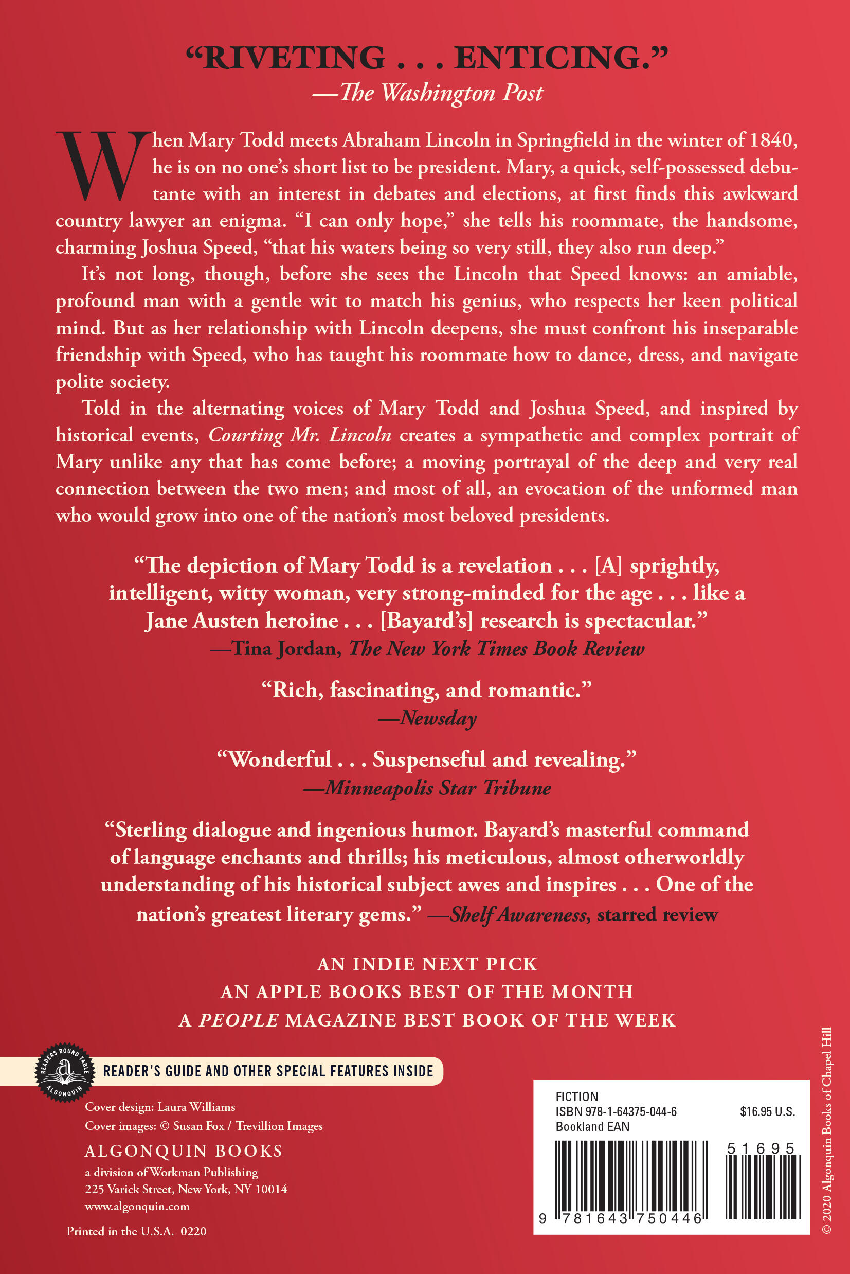 “A miracle; an exquisite story exquisitely told. This glorious novel, big-hearted and clear-eyed, features the most uncanny incarnation of our sixteenth president since Daniel Day-Lewis strode onscreen in Lincoln. If you love Jane Austen, or Hamilton, or fiction—of any era—that transports and transforms in equal measure, look no further. 'Whatever you are, be a good one,' Lincoln urged. Courting Mr. Lincoln is a good one—as good as storytelling gets.”