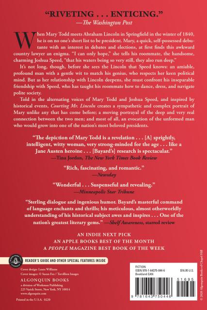 “Courting Mr. Lincoln gives us a young Abe Lincoln as we've never imagined him. It’s a moving portrait, told with cutting wit and intimately drawn detail, of three friends struggling to find their own identities against the weight of social expectations.”