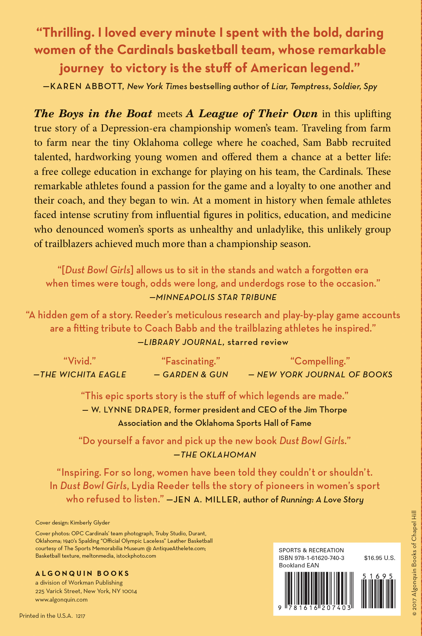 I>The Denver Post“If you are a sports fan and don’t know the story of the Oklahoma Presbyterian College Cardinals from Durant, do yourself a favor and pick up the new book Dust Bowl Girls…(It’s) another great sports story about an underdog whose triumphs inspired a community that badly needed a lift in the midst of hard economic times. I can’t wait for the movie.”