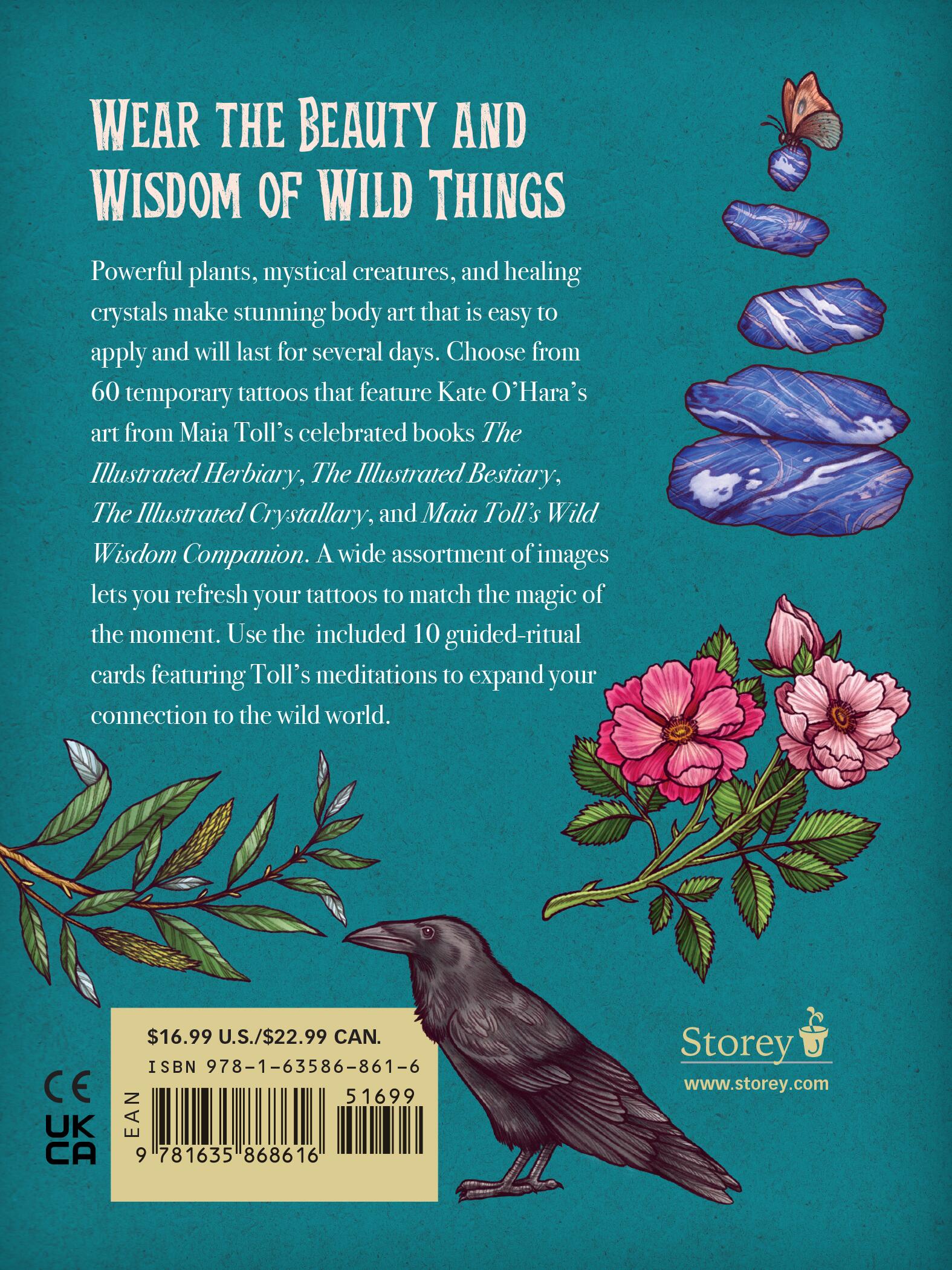 Maia Toll’s Wild Wisdom collection—The Illustrated Herbiary, The Illustrated Bestiary, The Illustrated Crystallary, and The Wild Wisdom Companion—has garnered fans around the world, from herb and plant lovers to fans of the mystical and occult. Maia Toll’s Wild Wisdom Tattoos transforms 60 of Kate O’Hara’s magical images from the books into wearable art. The set of intricate, richly colored images of plants, animals, and crystals also includes 10 collectible guided-ritual cards offering insight into the symbolism and power of some of the key images.