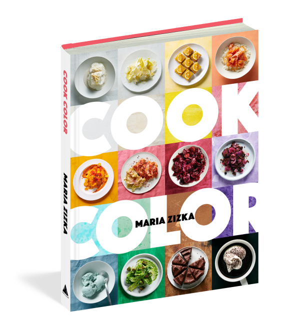 What is the flavor of sunshine? The taste of forest green? Does the red of a pepper evoke the warmth of its spice? Cook Color reveals a whole new way of thinking about food. Author Maria Zizka introduces readers to ideas from color theory and cooking sciences, explaining how to master food styling and cooking techniques to enhance and preserve color, without any artificial additives. But cooking by color isn’t just about looks; it is an approach that draws connections between aesthetics, seasonality, and flavor. Arranged in a gradient, the recipes begin with creamy shades of white—from a coconut cod and rice bowl to a garlicky bean and cauliflower salad. Yellows evoke the bright flavors in Margarita Bars, reds bring forward fiery tastes in dishes like Mapo Ragù with Rice Cakes, and greens highlight fresh and herbal flavors with dishes like Matcha and Mint Ice Cream Sundae or Zhoug-Marinated Feta and Fava Toasts. Blues, purples, and blacks present revelations: a butterfly pea flower boa stuffed with blue oyster mushroom, a classic Italian grape focaccia turned on its head with the addition of purple ube, and elegant black tahini cookies. To tie it all together, Zizka presents a special section of Color Menus, where she teaches readers how to use food to create palettes that evoke a sense of season, theme, or even a place: a Valentine’s menu decorated with red and pink indulgences, a spring menu featuring all fresh flavors and pastel tones, a seafood-focused menu of blue and coral hues to conjure a tropical ocean vibe. Cook Color is a celebration of eating beautifully and creatively, at any moment and for any occasion.