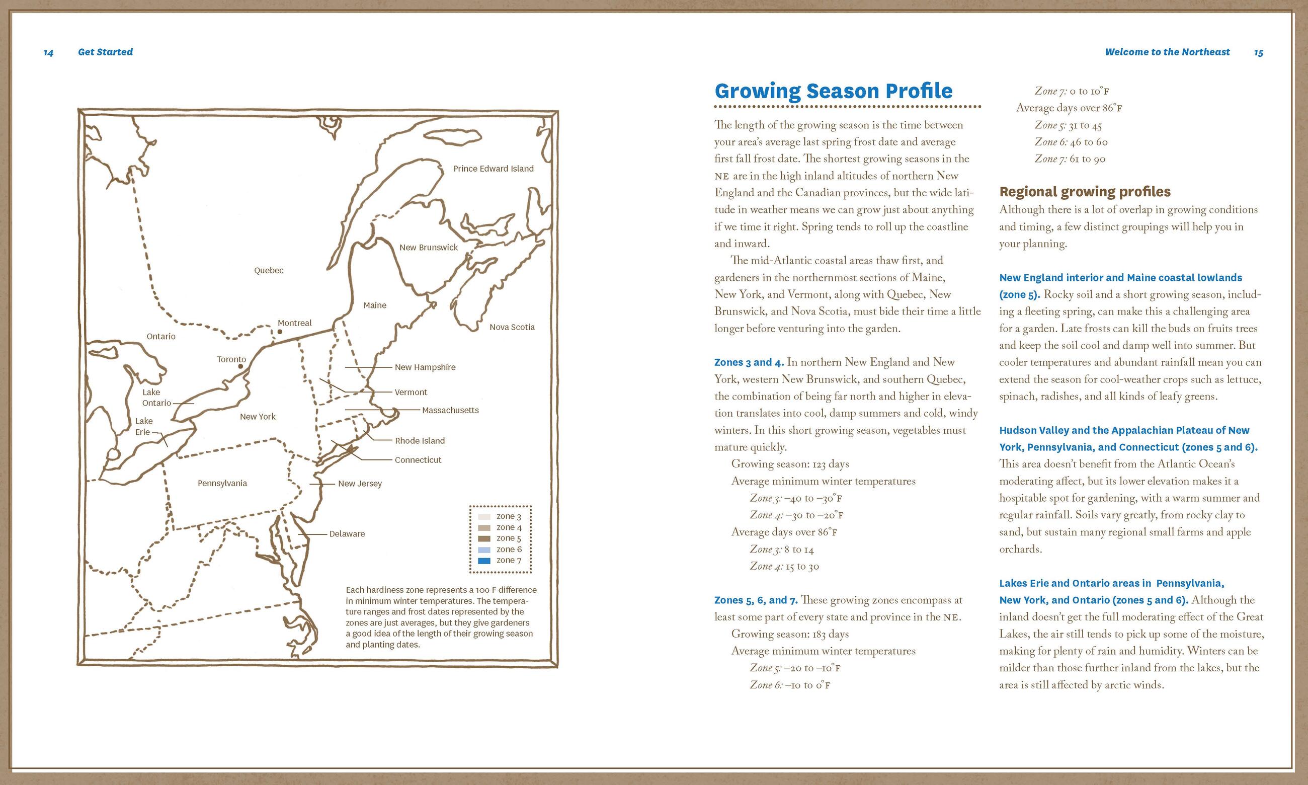 This must-have book is for gardeners in Connecticut, Delaware, Maine, Massachusetts, New Hampshire, New Jersey, New York, Pennsylvania, Rhode Island, and Vermont. The southernmost parts of Ontario, New Brunswick, Novia Scotia, and Quebec are also included.