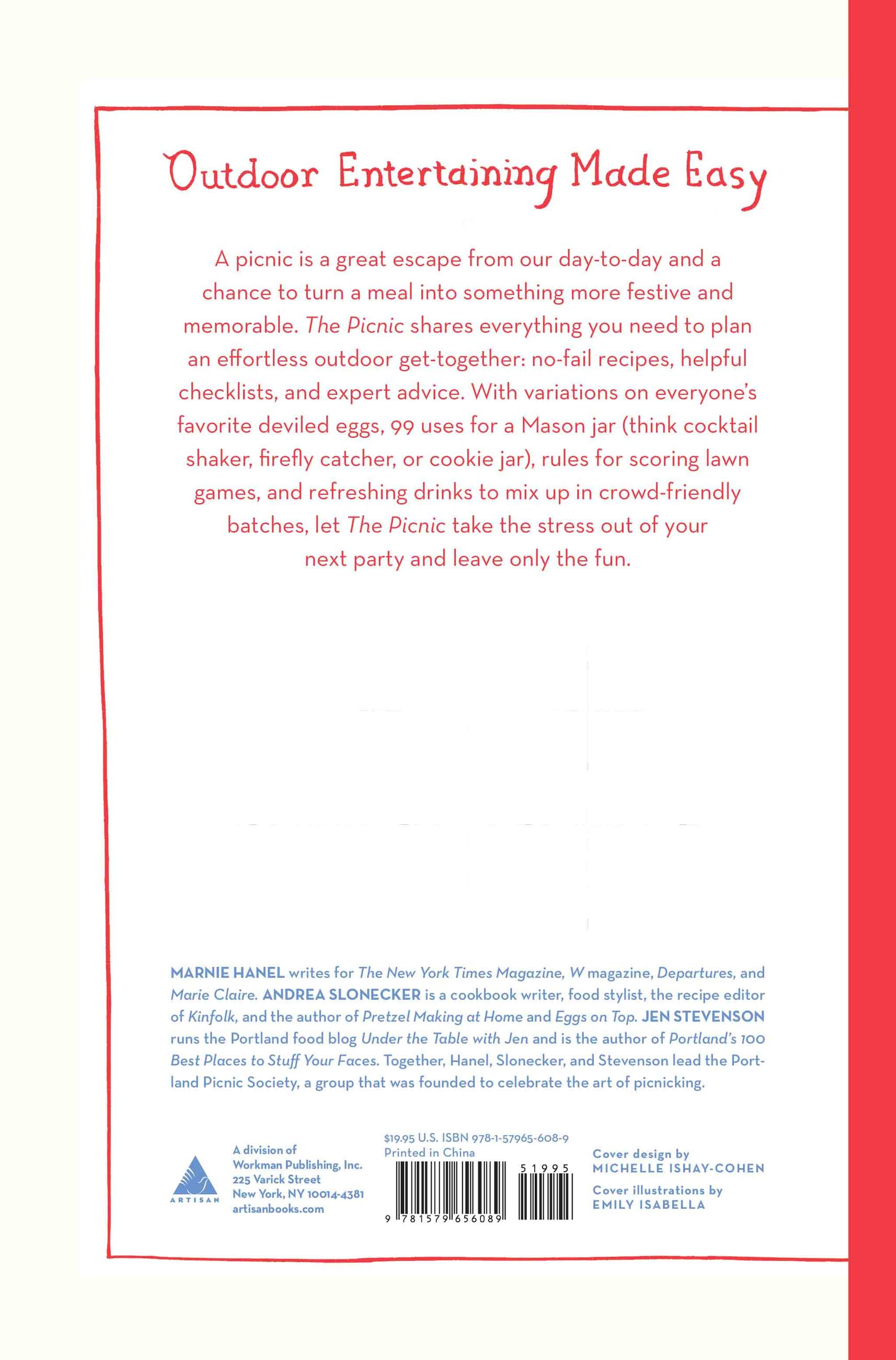 “Charming. . . . Perusing these colorfully illustrated pages, readers will learn how to select an appropriate site, cope with inclement weather, transport unwieldy or temperature-sensitive foods, and assemble a ‘glorious’ charcuterie board. The authors’ classy recipes for appetizers, salads, drinks, and more (e.g. kale panzanella with burnt lemon Caesar dressing, smoky tea-brined fried chicken, vanilla bean shortcakes with strawberries in basil syrup) all include thoughtful instructions for storage and serving. A fresh look at outdoor entertaining that’s just in time for spring and summer. Highly recommended.”