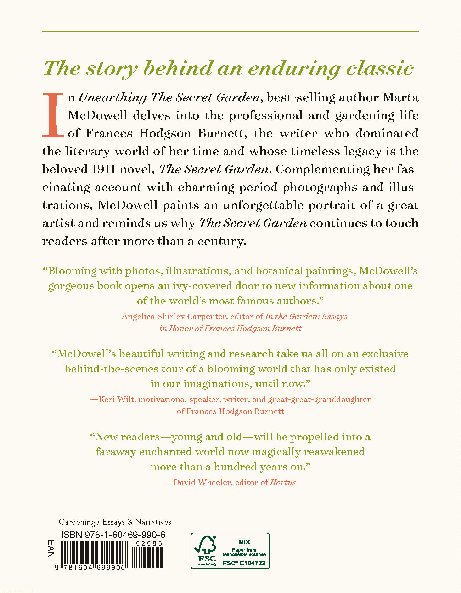“McDowell’s beautiful writing and research take us all on an exclusive behind-the-scenes tour of a blooming world that has only existed in our imaginations, until now.”B>Keri Wilt, motivational speaker and writer and great-great-granddaughter of Frances Hodgson Burnett