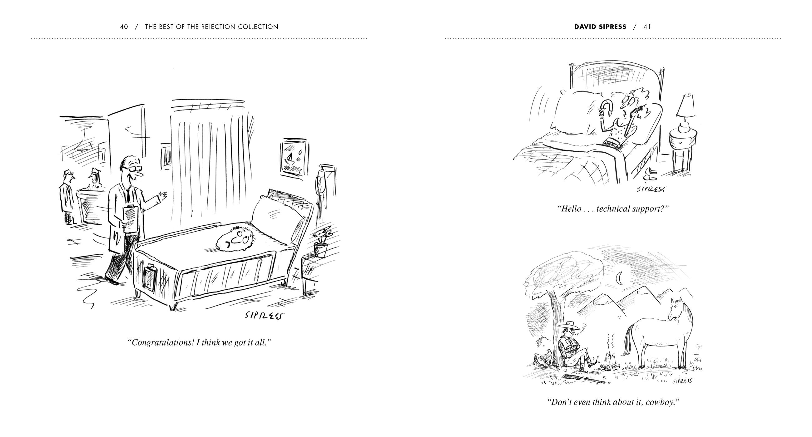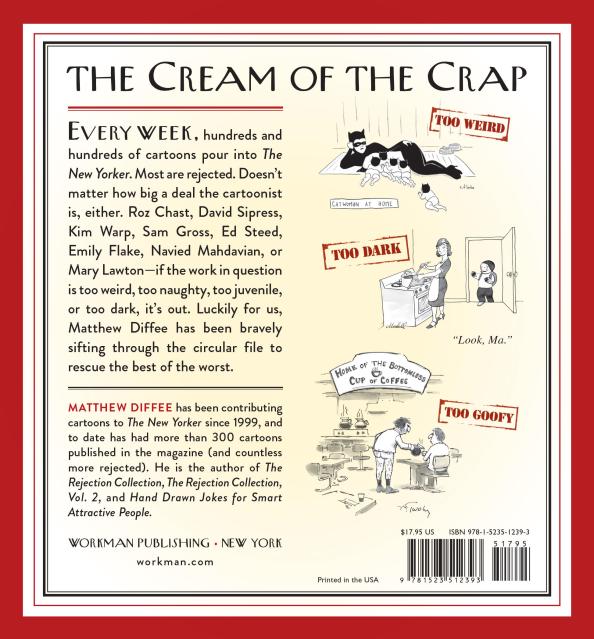 Every week, hundreds and hundreds of cartoons pour into The New Yorker. Most are rejected. Doesn’t matter how big a deal the cartoonist is, either. Roz Chast, David Sipress, Kim Warp, Sam gross, Ed Steed, Emily Flake, Navied Mahdavian, or Mary Lawton—if the work in question is too weird, too naughty, too juvenile, or too dark, it’s out. Luckily for us, Matthew Diffee has been bravely sifting through the circular file to rescue the best of the worst.