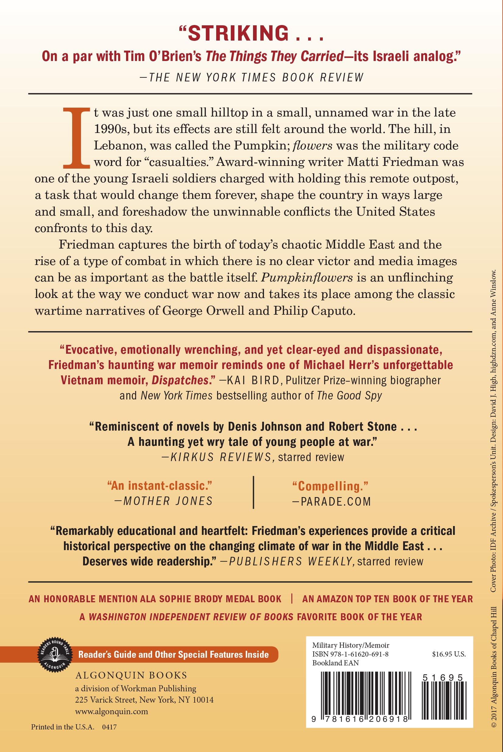 “In Pumpkinflowers: A Soldier’s Story Mr. Friedman has written a top-notch account of this under-analyzed war, persuasively arguing that it heralded a new style of combat in the Middle East, though no one knew it at the time.” —Jennifer Senior, The New York TimesBooklist, starred review