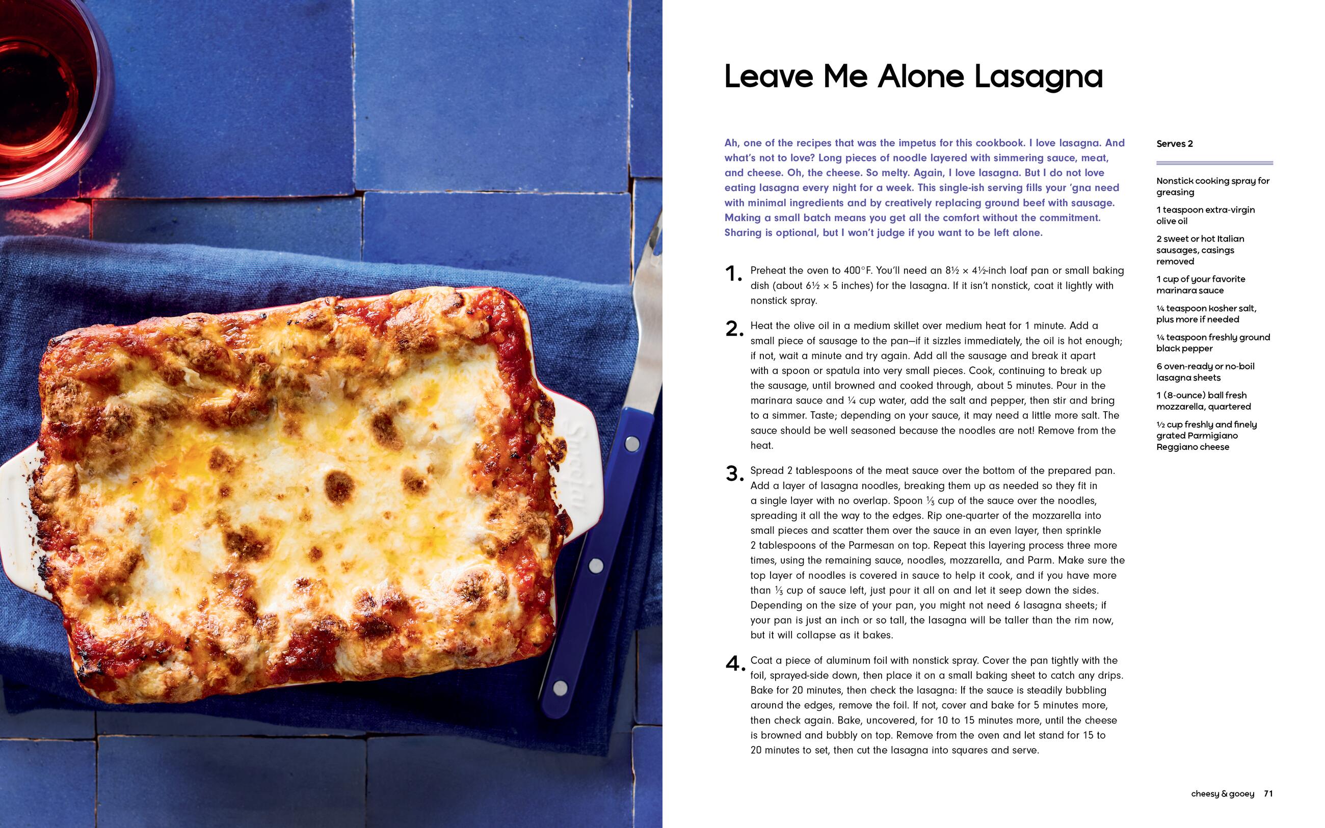 If you’re picking up this book, chances are you agree cooking is one of the ultimate acts of care—both for others and for yourself. But why are most recipes meant to serve four to six people—or more? When you’re cooking for yourself, all that matters is you, especially when you’ve got places to be, things to do, and a craving to satisfy. Cooking for one often means scaling down ingredients and adjusting cooking times: it can drive you crazy. Sometimes, one is all you want.