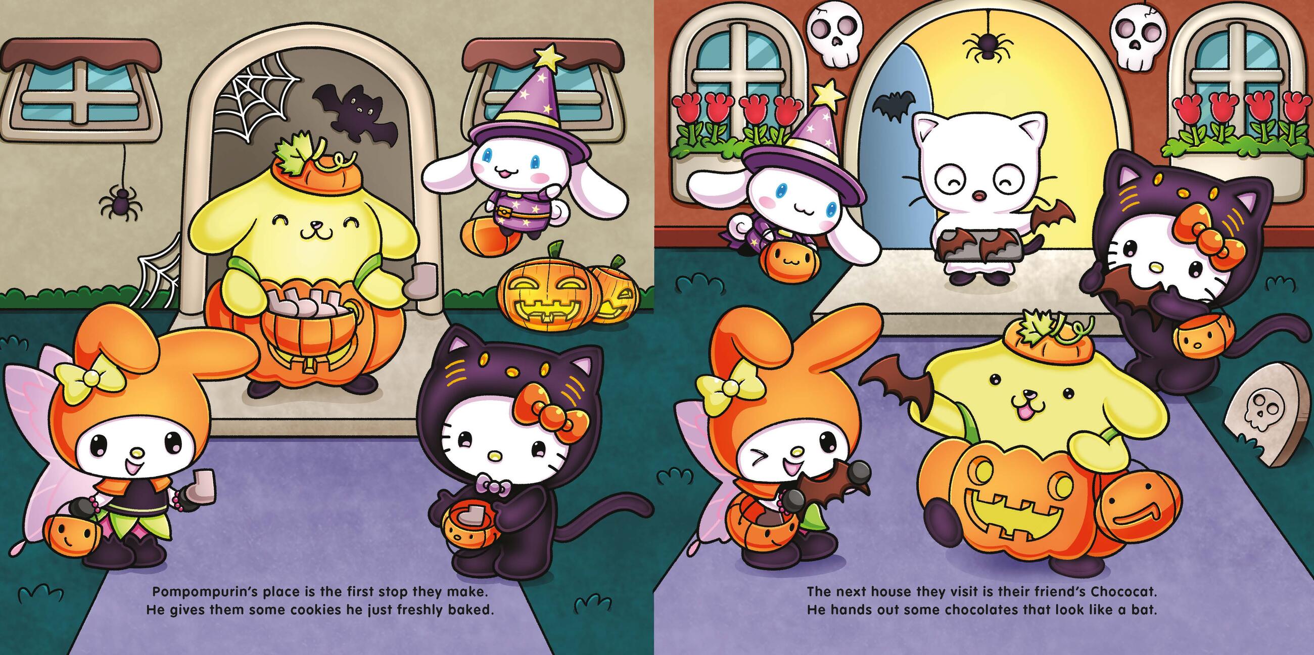 Hello Kitty is preparing for a supercute and spooky night of trick-or-treating and Halloween fun with costumes, goodies, and even a few frights with her friends. My Melody and Cinnamoroll join Hello Kitty at her house as they begin their trick-or-treat rounds, visiting their friends and even starting a spooky but joyful Halloween parade! The evening ends in a festive party with pumpkin carving, haunted house antics, and a monstrously fun dance party. As the night ends, Hello Kitty and friends wish everyone a very happy, spooky, supercute Halloween!
