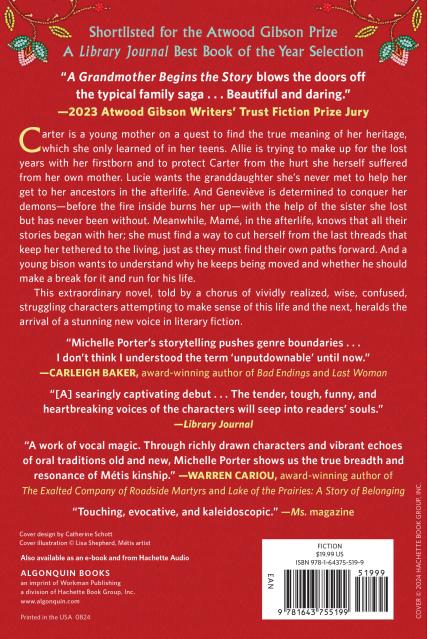 “Michelle Porter’s A Grandmother Begins the Story blows the doors off the typical family saga... Beautiful and daring.”2023 Atwood Gibson Writers' Trust Fiction Prize Jury