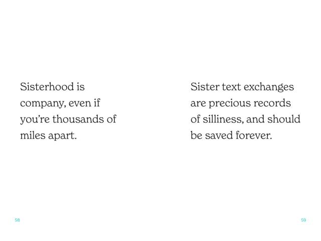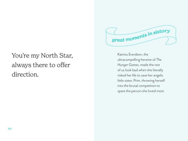 And rounding out the book are “Great Moments in Sistory,” spotlighting some of the most famous sisters from history and pop culture, including Venus and Serena Williams, Anna and Elsa from Frozen, Emily and Charlotte Brontë, and other iconic duos.