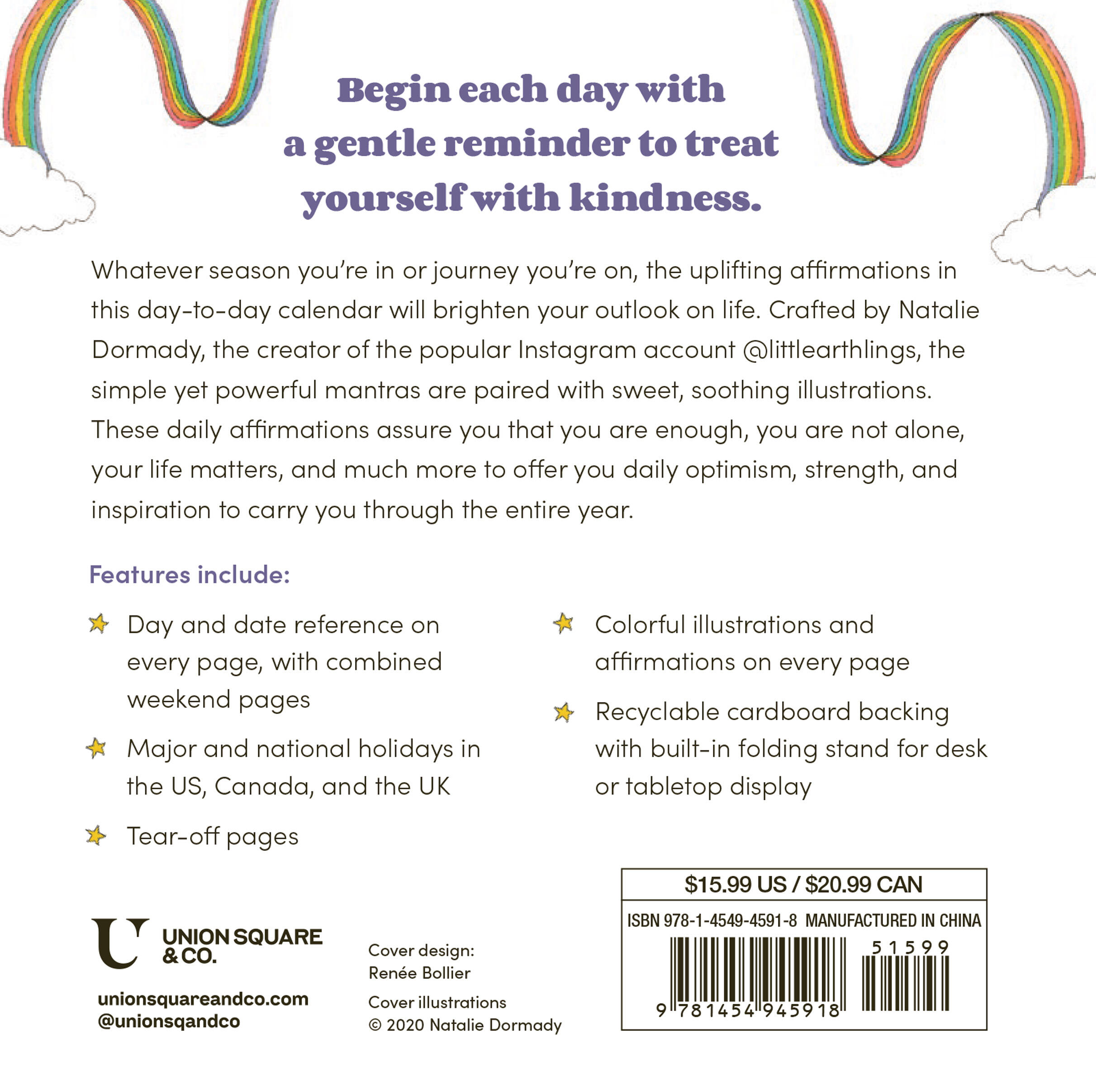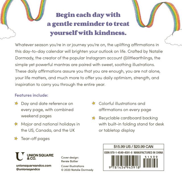 Whatever journey you’re on, the affirmations in this day-to-day calendar will brighten your outlook on life. Crafted by the creator of the popular Instagram account @littlearthlings, Natalie Dormady, these simple yet powerful words paired with charming, soothing images will give you strength and inspiration. Drawn from Dormady’s 365 Gentle Reminders book, the daily affirmations within assure you that “You are enough,” You are not alone,” “Your life matters,” and more.