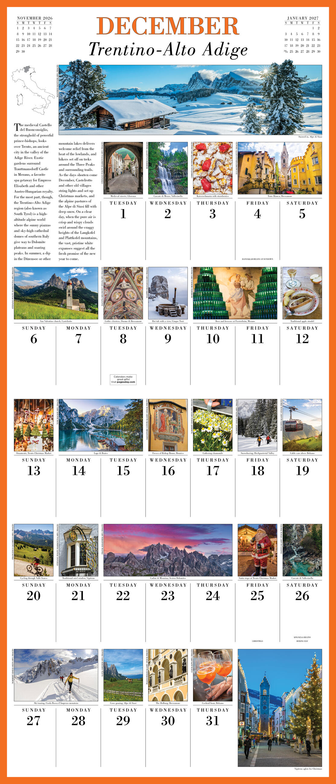 - PERFECT GIFT: A beautiful gift for travel lovers and Italy obsessives, the 12” x 14” picture-a-day format offers more photography and more content every month.