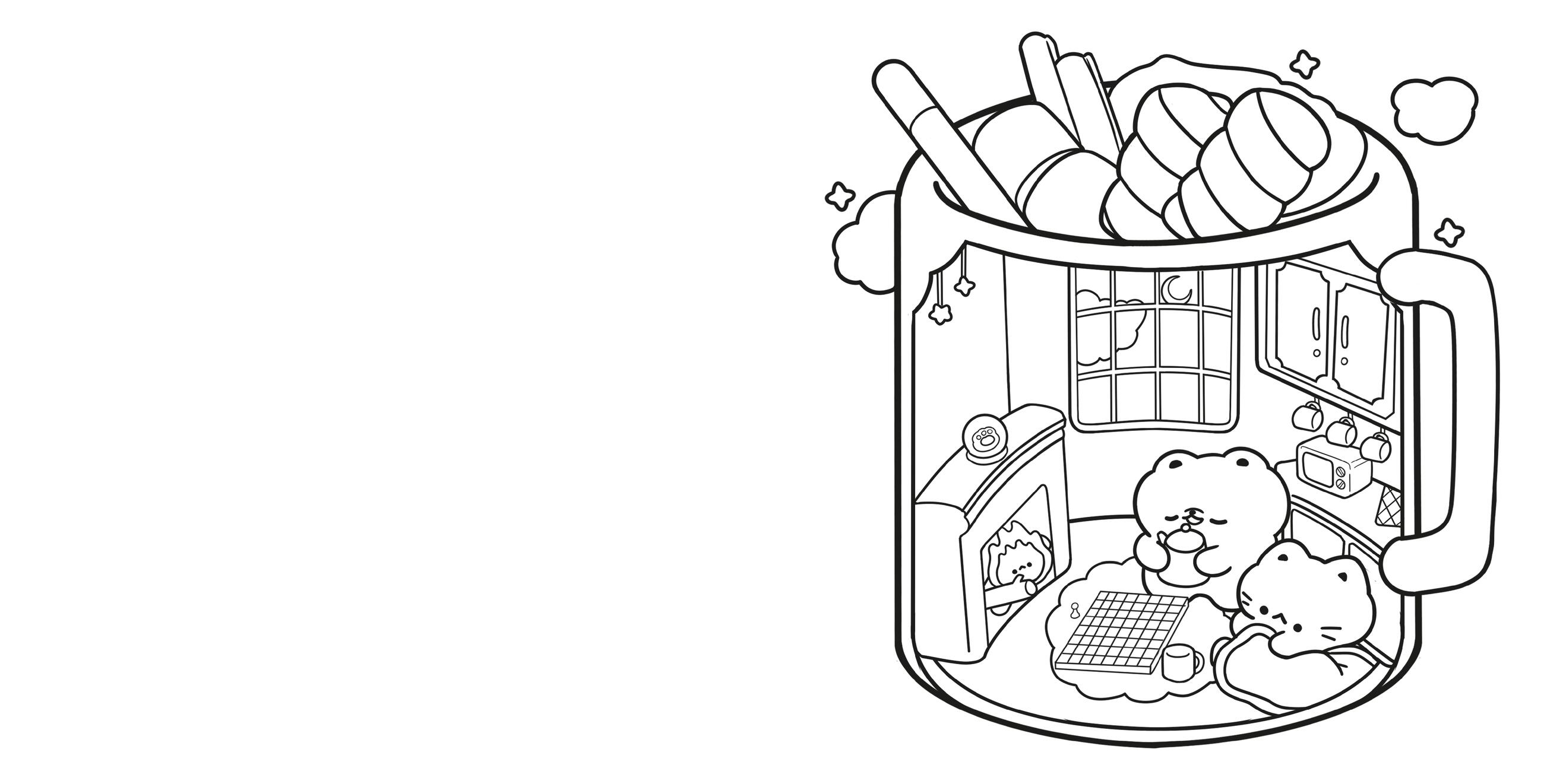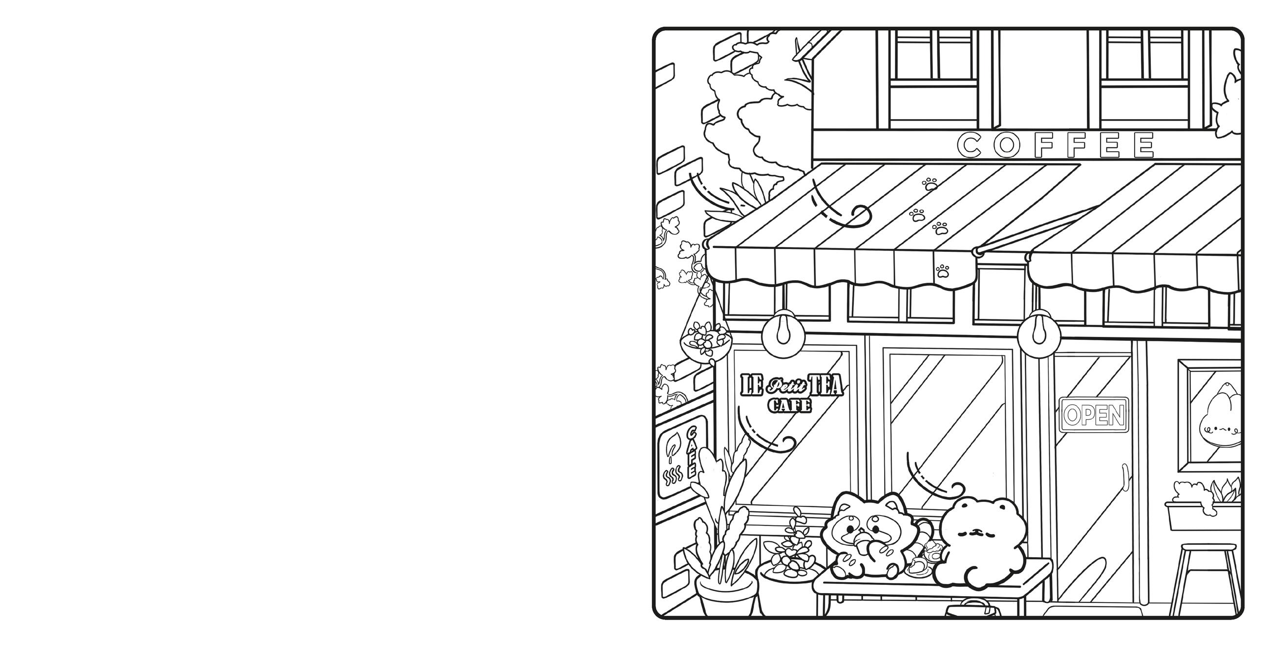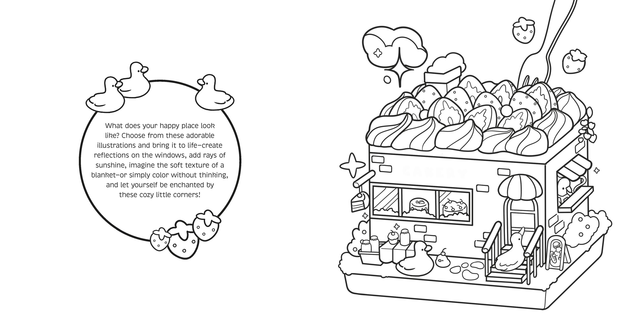 This Cozy Corners coloring book includes: