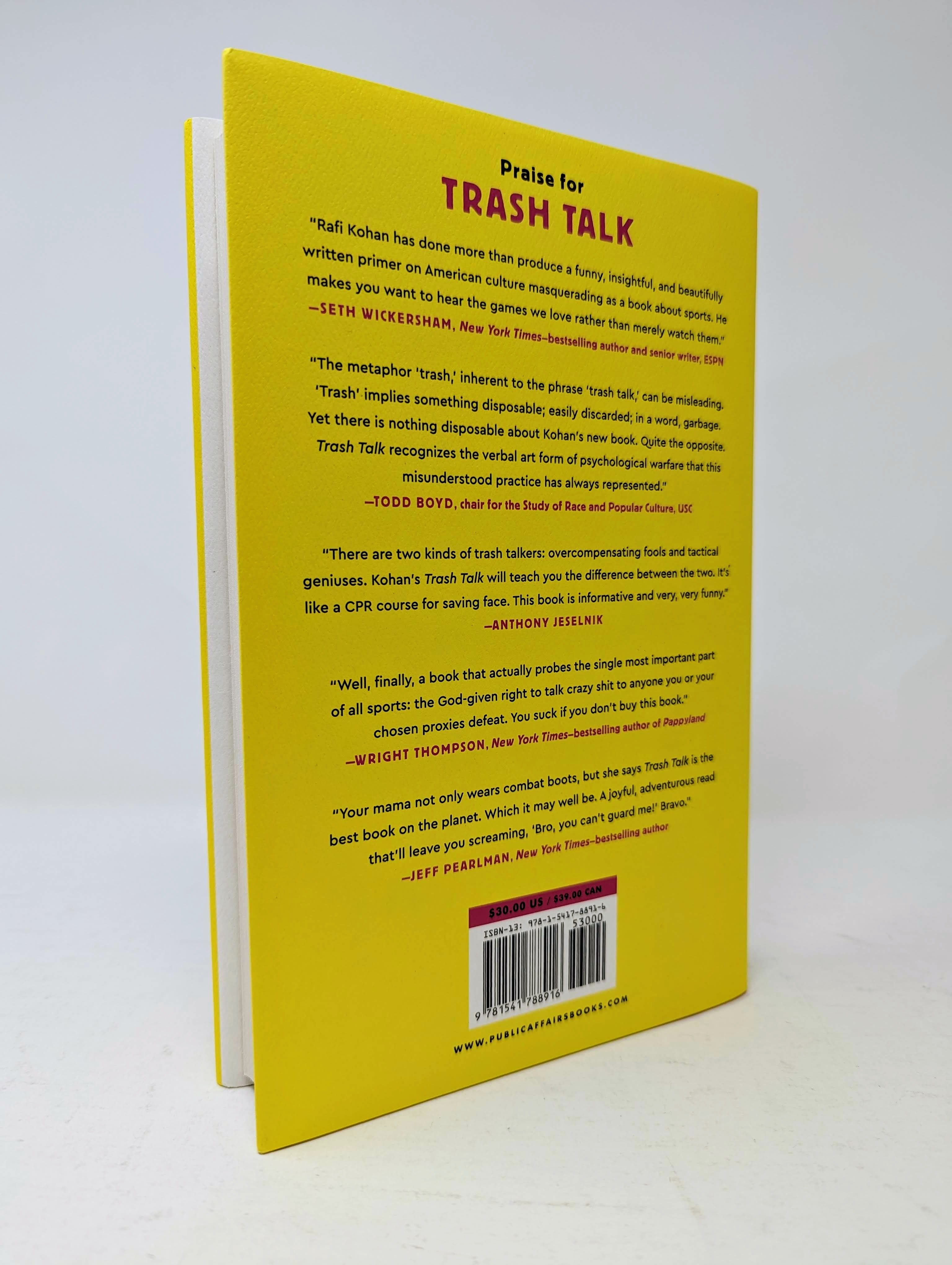 The metaphor ‘trash,’ inherent to the phrase ‘trash talk,’ can be misleading. ‘Trash’ implies something disposable; easily discarded; in a word, garbage. Yet there is nothing disposable about Kohan’s new book. Quite the opposite. Trash Talk recognizes the verbal art form of psychological warfare that this misunderstood practice has always represented.Todd Boyd, chair for the Study of Race and Popular Culture, USC