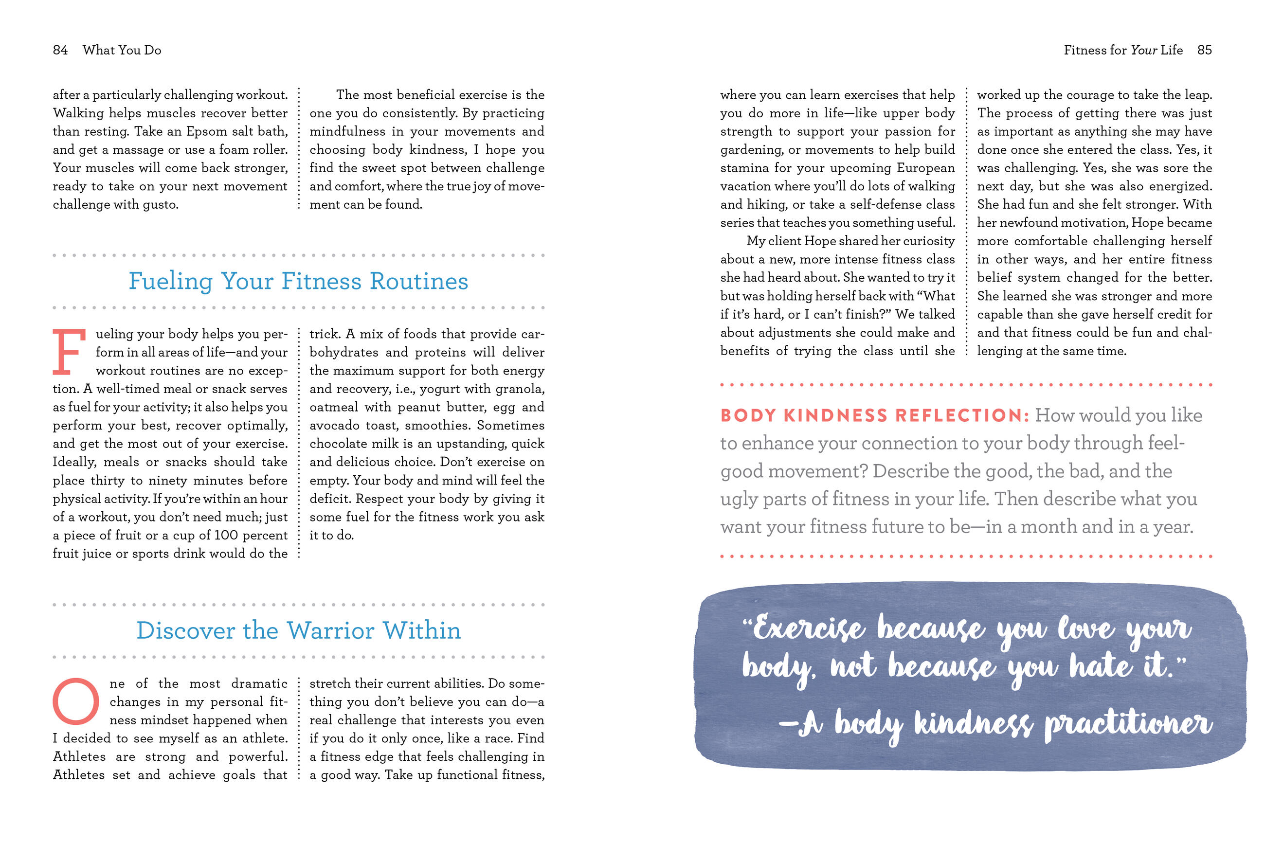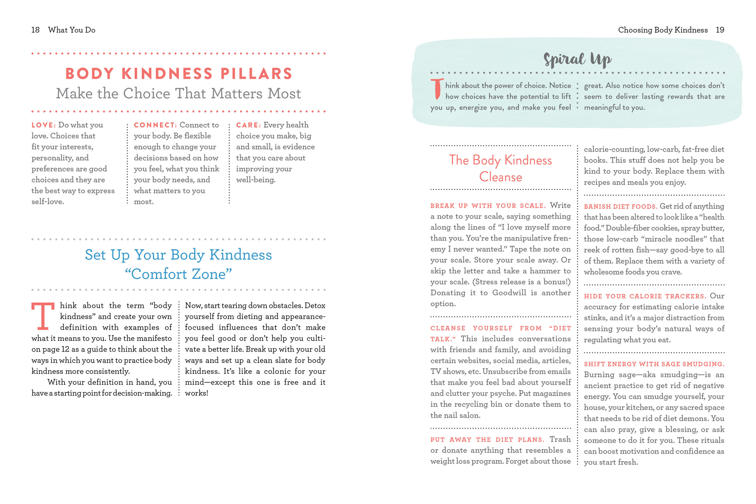 With mind and body exercises to keep your energy spiraling up and prompts to help you identify what YOU really want and care about, Body Kindness helps you let go of things you can’t control and embrace the things you can by finding the workable, daily steps that fit you best. It’s the anti-diet book that leads to a more joyful and meaningful life.