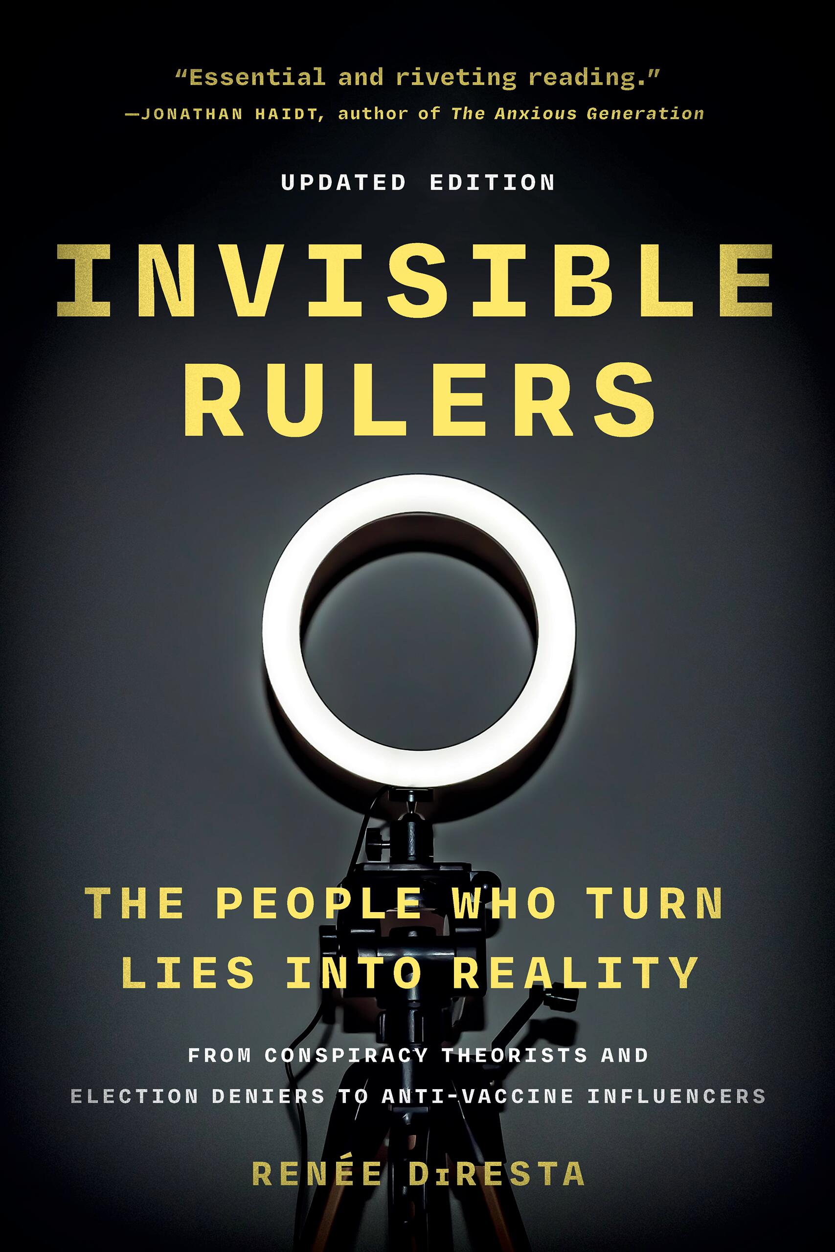 “I am in awe of DiResta’s ability to see through the digital haze and identify many of the most important threats coming at the United States and humanity more broadly. As AI supercharges social media and the power of conspiracy theorists, foreign intelligence agencies, and all who would turn lies into reality, we are so fortunate that DiResta shares her hard-won knowledge with us—and her battle scars. Invisible Rulers is essential and riveting reading.”Jonathan Haidt, Thomas Cooley Professor of Ethical Leadership, New York University, Stern School of Business, and author of The Righteous Mind