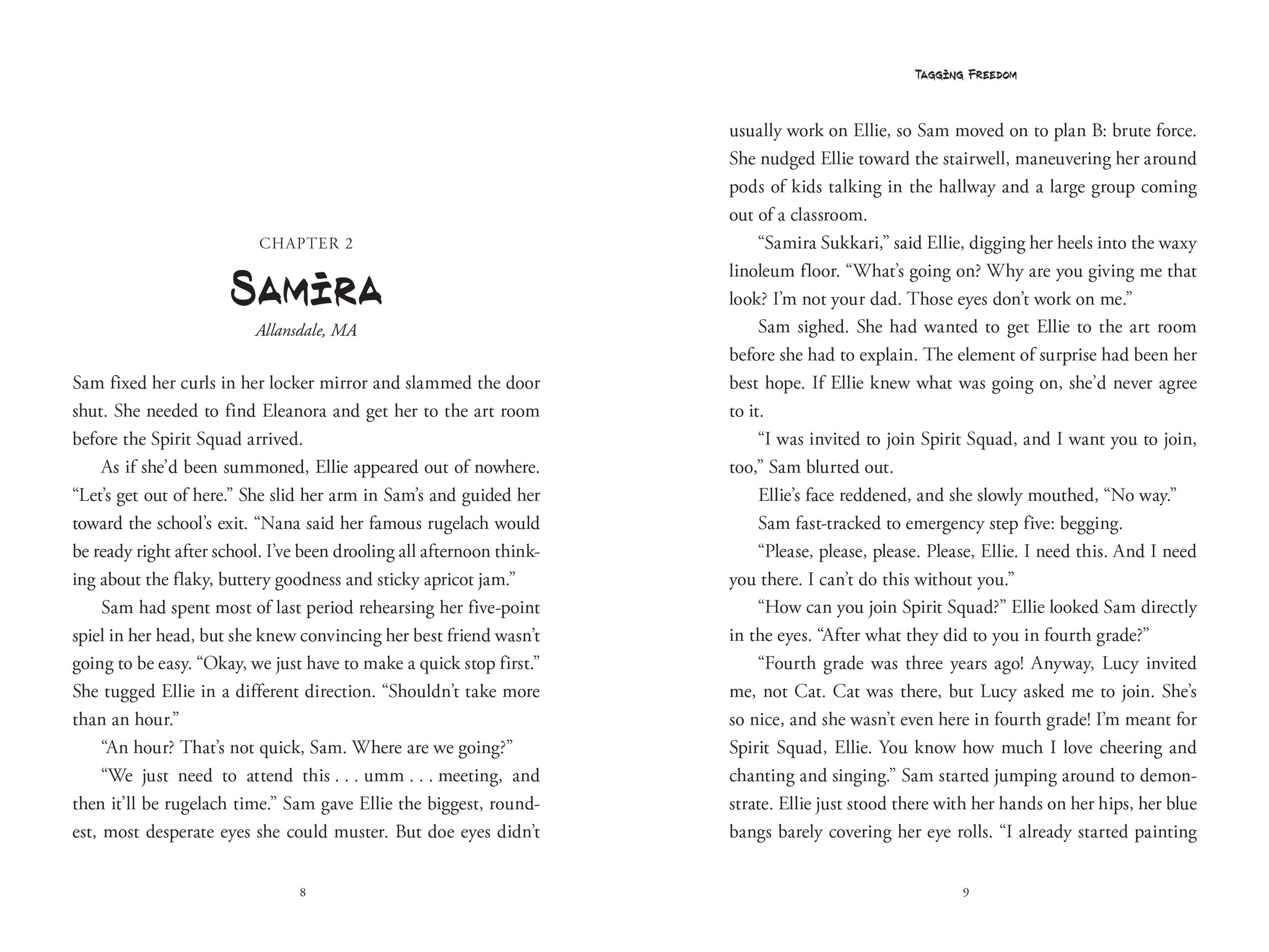 Meanwhile, in the United States, his cousin, Samira, has been trying to make her own mark. Anxious to fit in at school, she joins the Spirit Squad where her natural artistic ability attracts the attention of the popular leader. Then Kareem is sent to live with Sam’s family, and their worlds collide. As graffitied messages appear around town and all eyes turn to Kareem, Sam must make a choice: does she shy away to protect her new social status, or does she stand with her cousin?