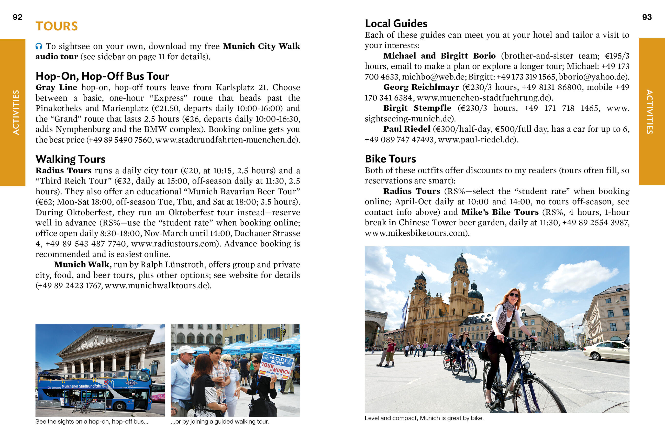- City walks and tours: Five detailed self-guided walks including a Munich city walk, Nymphenburg Palace tour, Museum Quarter tour, and more