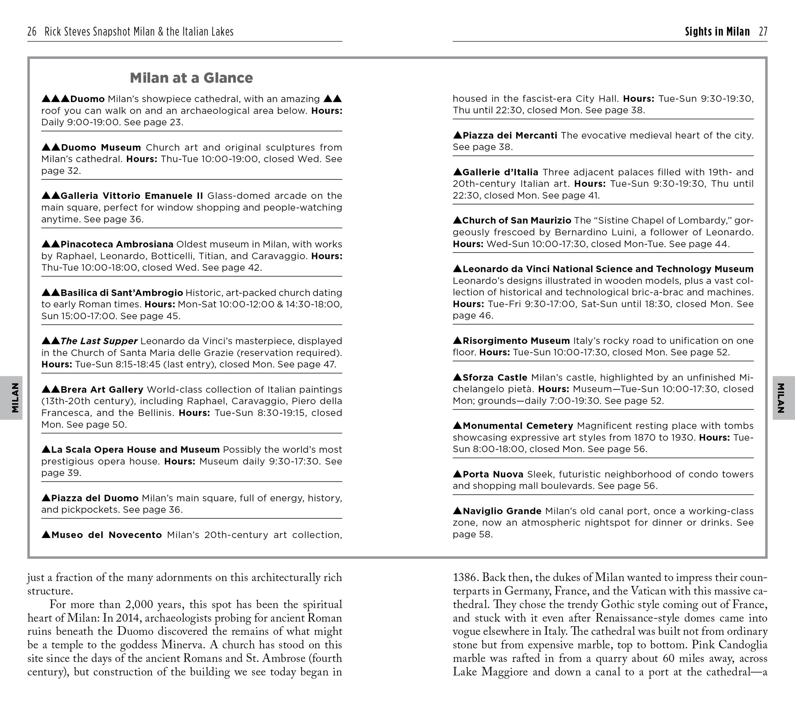 - Rick’s firsthand, up-to-date advice on Milan and the nearby lakes’ best sights, restaurants, hotels, and more, plus tips to beat the crowds, skip the lines, and avoid tourist traps