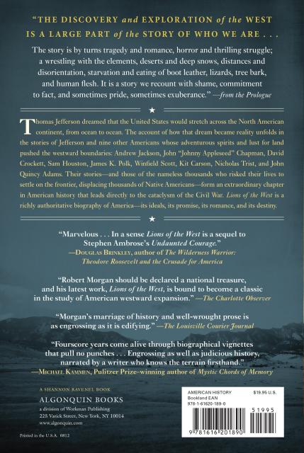 “In his fascinating, magnificent Lions of the West, Morgan ... writes with an enviable clarity that makes personalities, issues and events come alive on the page... This authoritative and enlightening book engages the reader from the first page and holds our attention until the last.” –BookPage