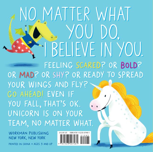 Every child sometimes needs a little extra encouragement, a reminder that they are capable, resilient, and loved no matter what. Maybe it’s on the first day of school, or before a music recital or trying out for a team, or maybe it’s before going to the birthday party of a brand new friend. I Believe in You is the book for just that moment––an irresistibly sweet tale about a little dragon learning to spread his wings and a unicorn who offers unconditional support and motivation along the way.