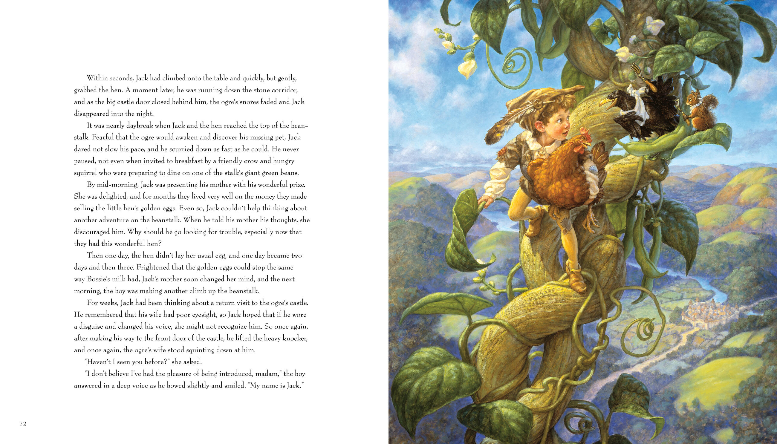 Stories such as “Sleeping Beauty,” “Jack and the Beanstalk,” and “Sambha and the Tigers” leap off the page thanks to Gustafson’s exquisite paintings and lively retelling of these classics. “The Lion and the Mouse” and “The Country Mouse and the City Mouse” demonstrate his talent at creating uncanny anthropomorphic characters who keep us smiling even as they teach us about tolerance, diversity, and the Golden Rule.