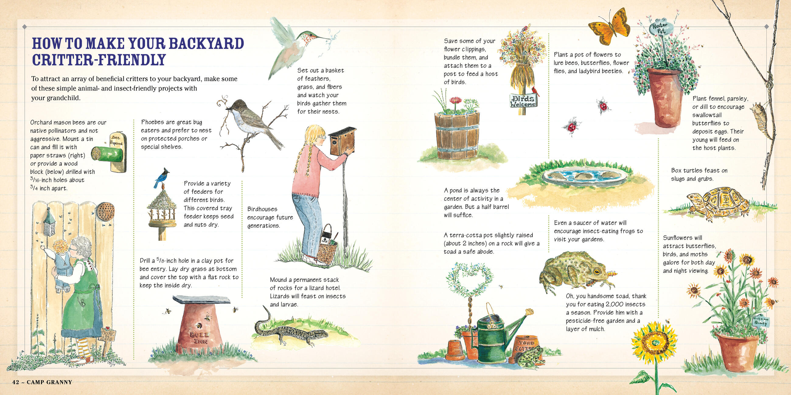 Make leaf rubbings, blow jumbo bubbles, bake Moon Pizzas, create a firefly lantern. More than an activity book, CAMP GRANNY is an interactivity book, filled with 130 projects that connect grandparents and grandchildren through nature—in the kitchen, the garden, and the art room.