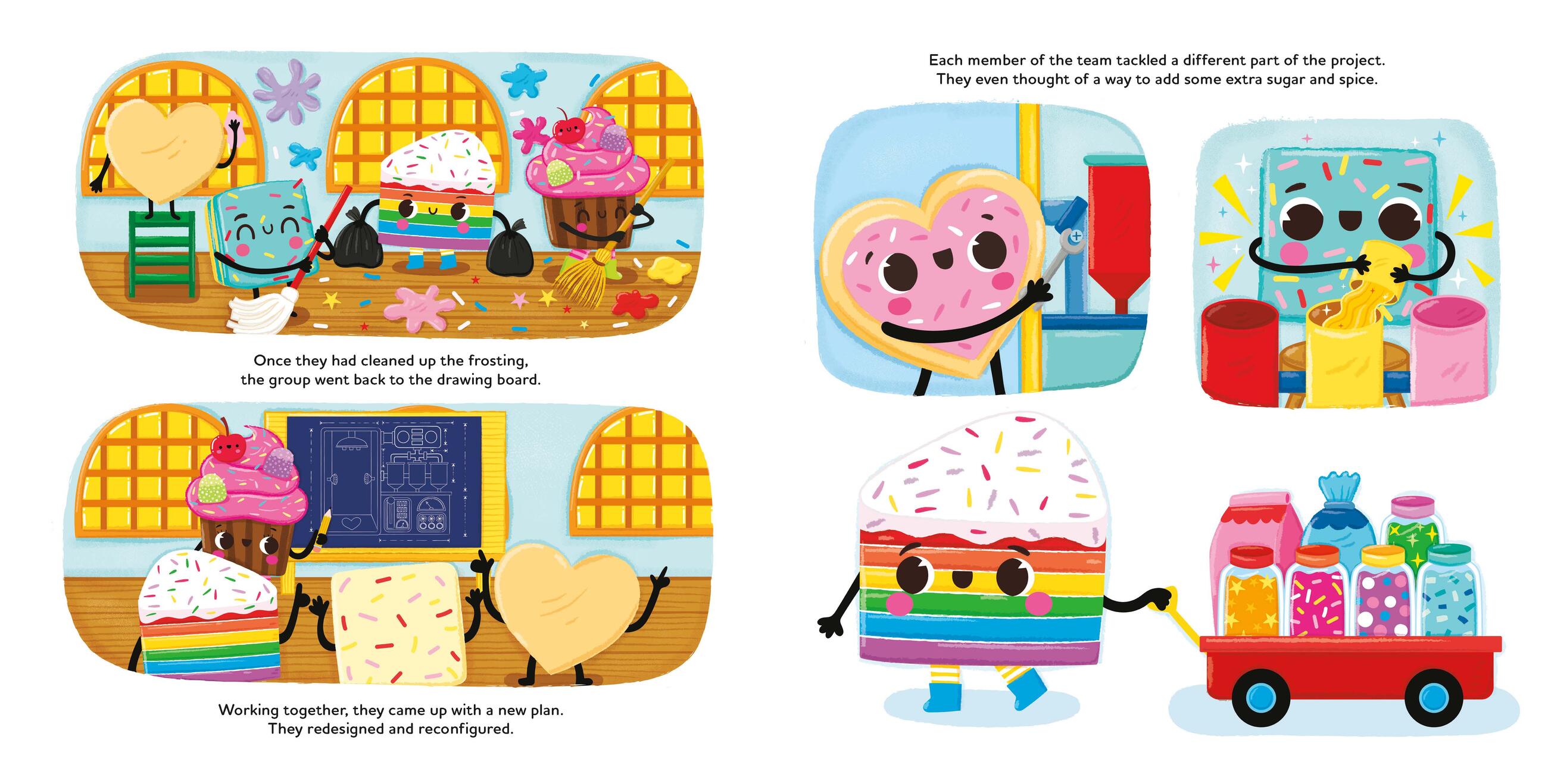 Rosie the Cupcake has just moved into 5 Sugar High Rise. As Yummy World’s first resident architect and engineer, she is super excited to design a brand-new icing factory. Everyone in Sugar High Rise offers to help, but Rosie insists she can do it all on her own. When things don’t go as planned though, Rosie wonders if she made a huge mistake. As she works on rebuilding both her relationships and the factory, she learns that one of the most important parts of any project is teamwork. Besides, life is much sweeter with friends!
