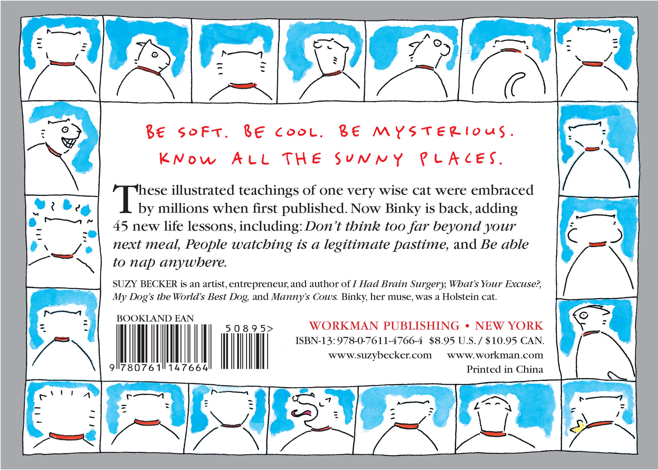 In the years since we first published All I Need to Know I Learned from My Cat , with over 2 million copies in print and the fastest-selling book in Workman’s history, one thing hasn’t changed—people are still starved for wisdom. Few oracles have dispensed as much common-sense truth as Binky, Suzy Becker’s cat. “It’s O.K. to wear the same thing every day.” “Know all the sunny places.” “Flaunt your hair loss.” “Get mad when you’re stepped on.” Life lessons such as these and dozens of others propelled the book like a champagne cork to the top of The New York Times bestseller list.