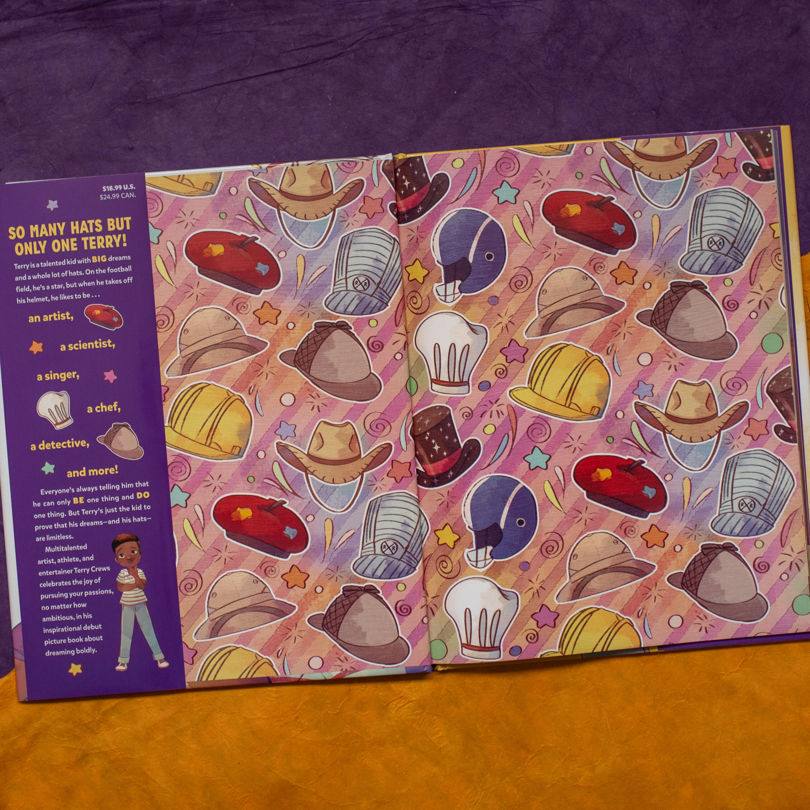Terry is a talented kid with big dreams and a whole lot of hats. On the football field, he’s a star, and when he takes off his helmet, he puts on his other hats: in his beret he becomes an artist, in his chef’s hat he cooks, and in his sparkly top hat, he’s a magician!