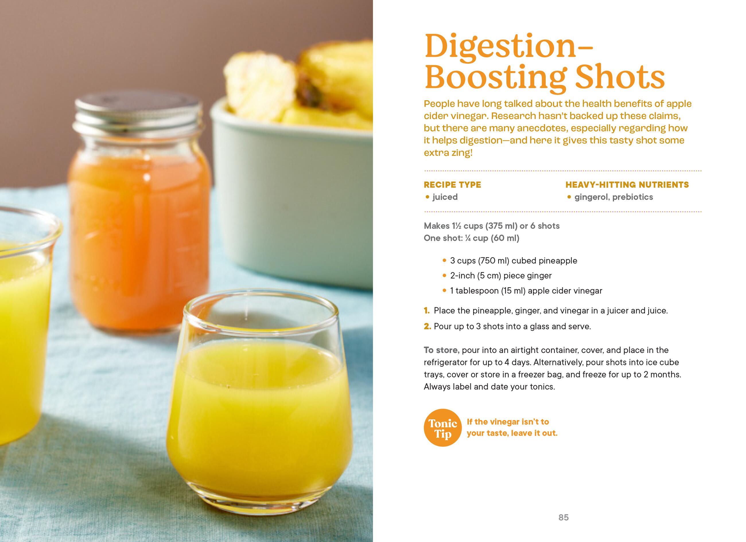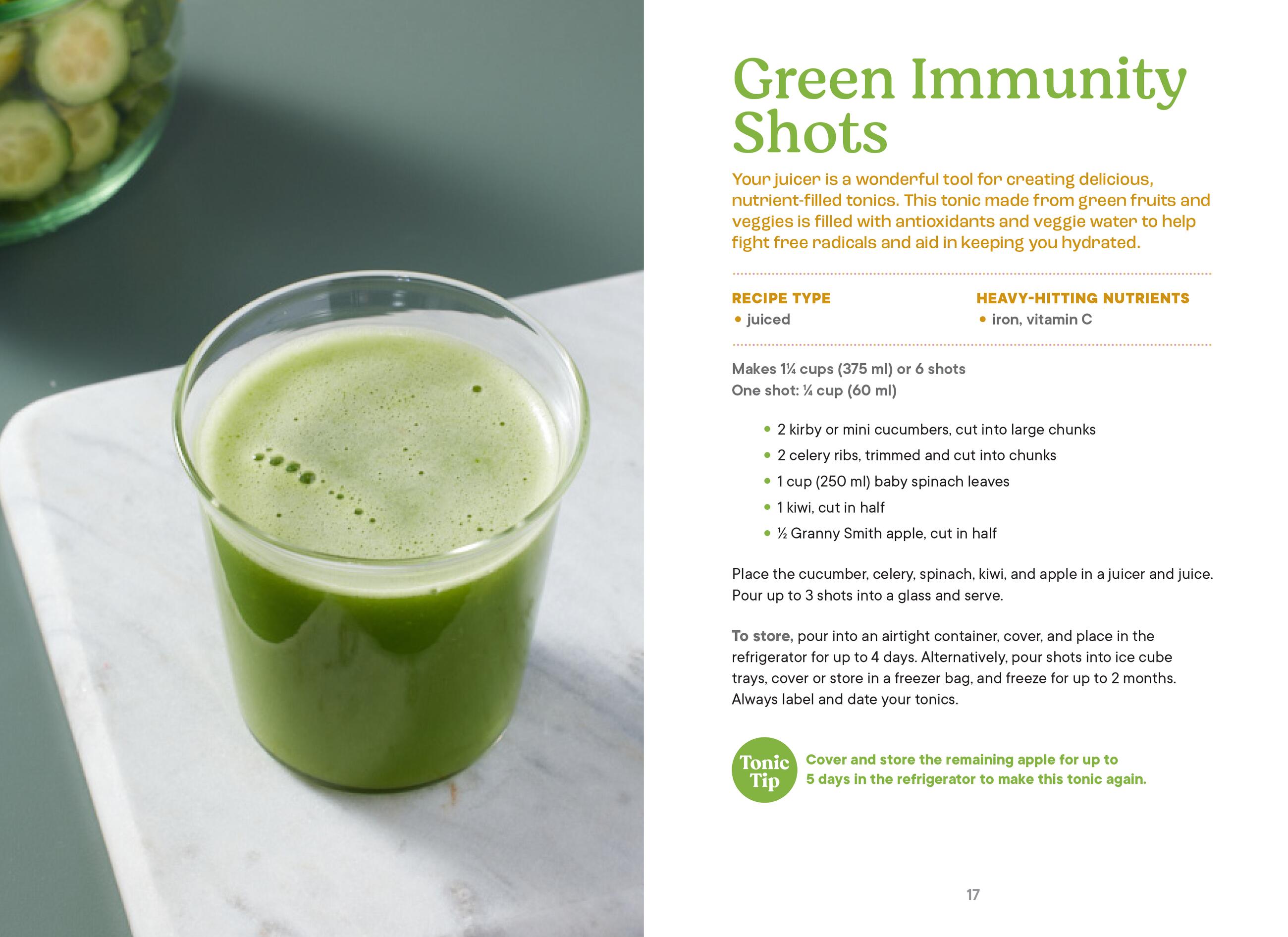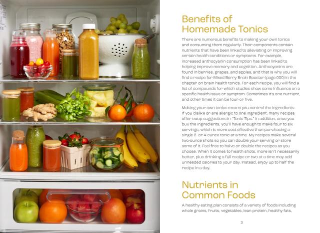 Amidor covers juicing, blending, straining, and steeping—with an overview of food safety, and how to take tonics as part of a healthy eating plan. Each recipe also contains a “tonic tip” providing additional insight on key ingredients, substitutions, or what to do with leftover ingredients to minimize food waste.