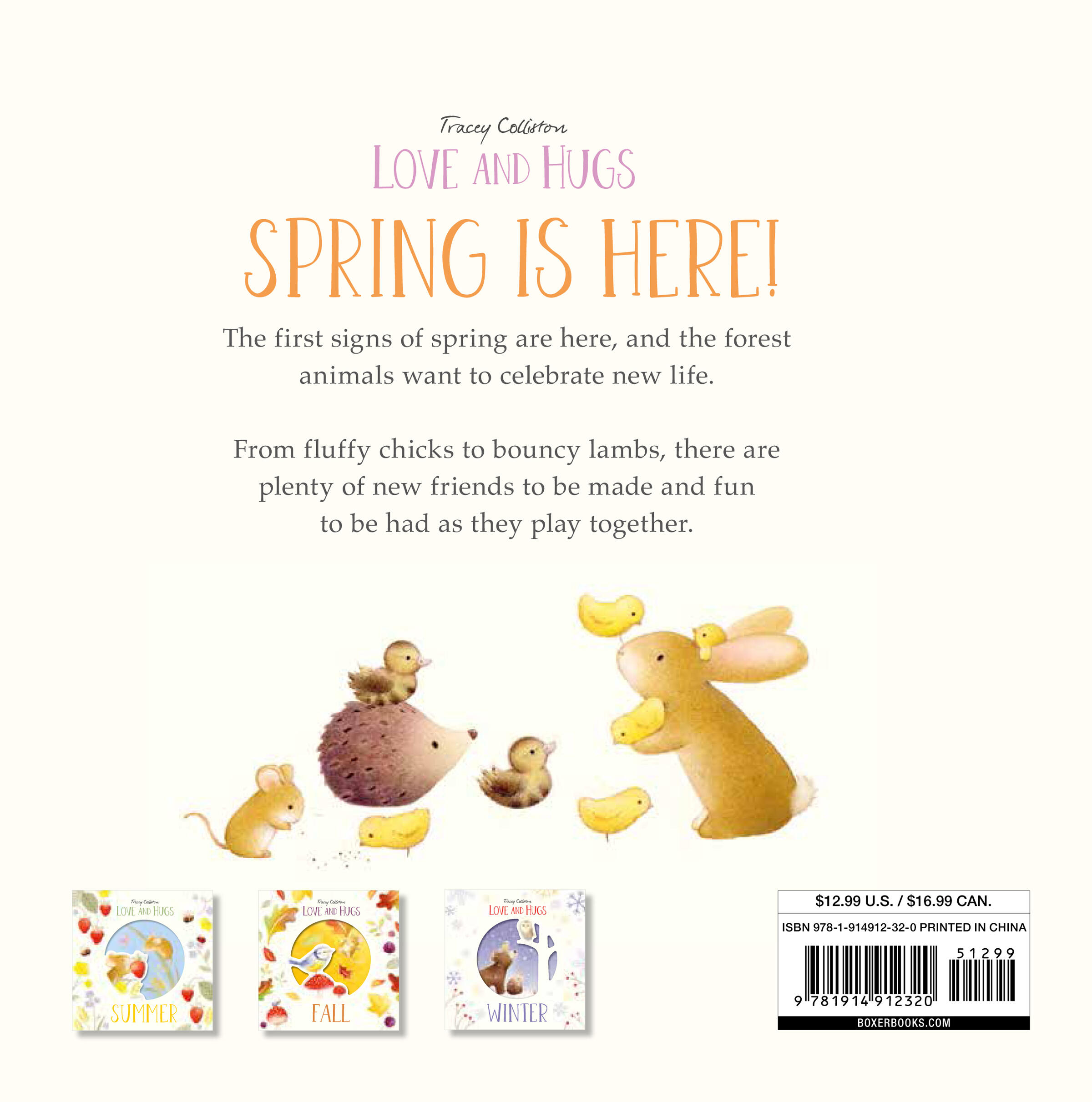 Love and Hugs: Spring explores and celebrates all things springlike with a whole host of delightful new characters rendered in soft watercolors. There are spring walks, new babies, flowers and fun, being with friends, and spending time together.