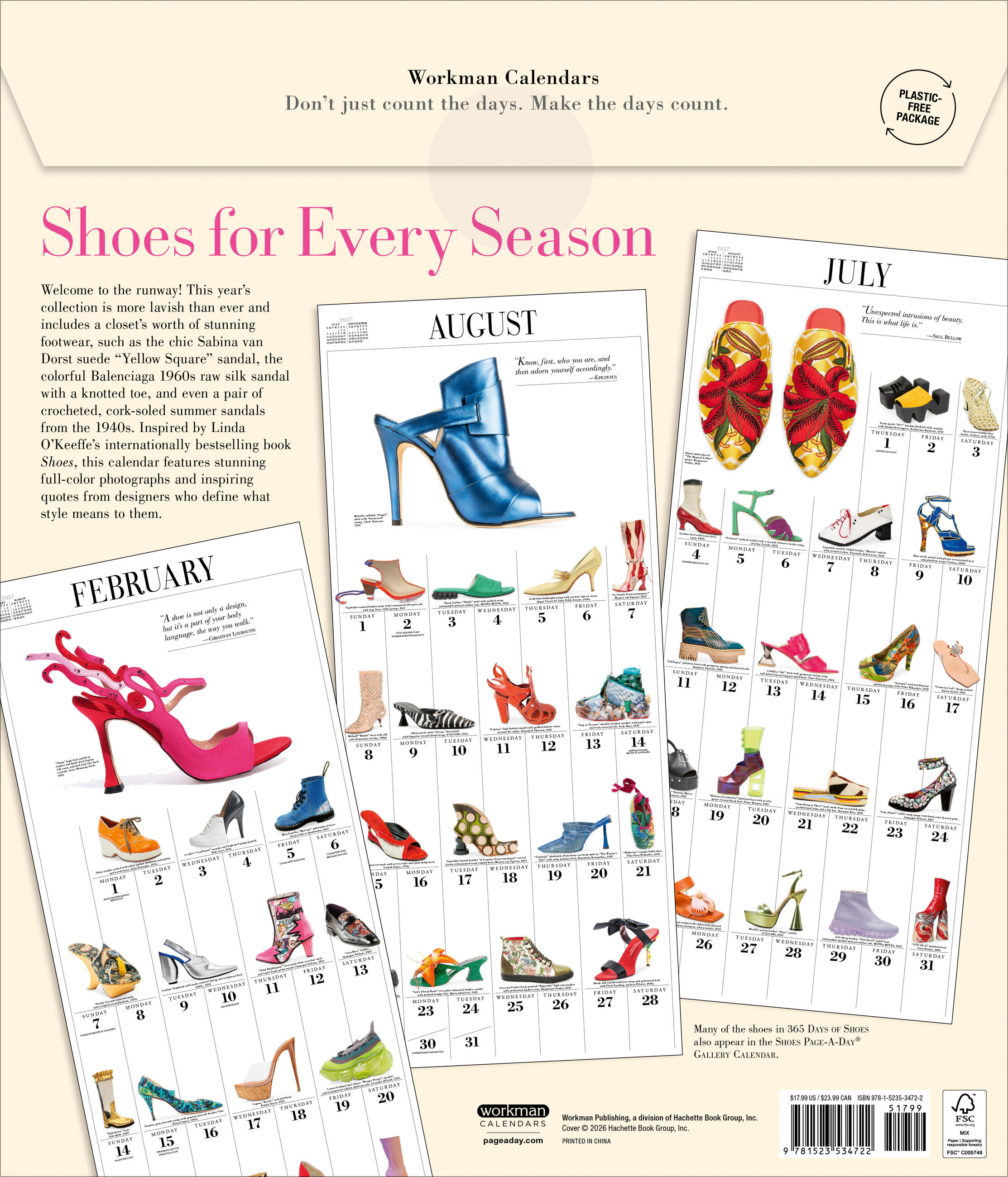 - PICTURE-A-DAY FORMAT: Each month features a beautiful, large full-color photograph at the top, plus dozens more throughout the grid, and a delightful quote from a style icon.