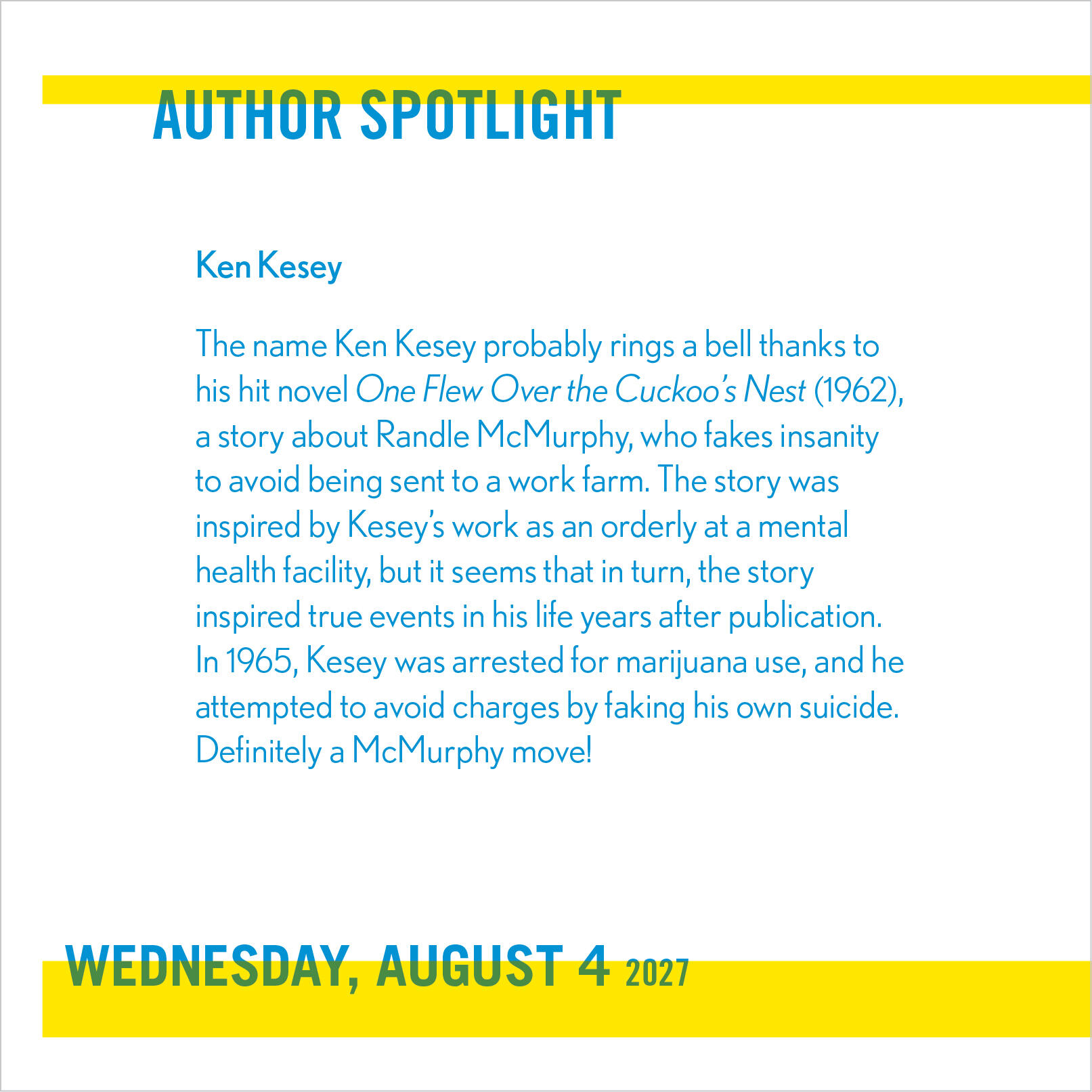 - INSIGHTFUL AND ENTERTAINING: Full of reading lists, author spotlights, history, trivia, quotes, and quizzes for fun literary year.