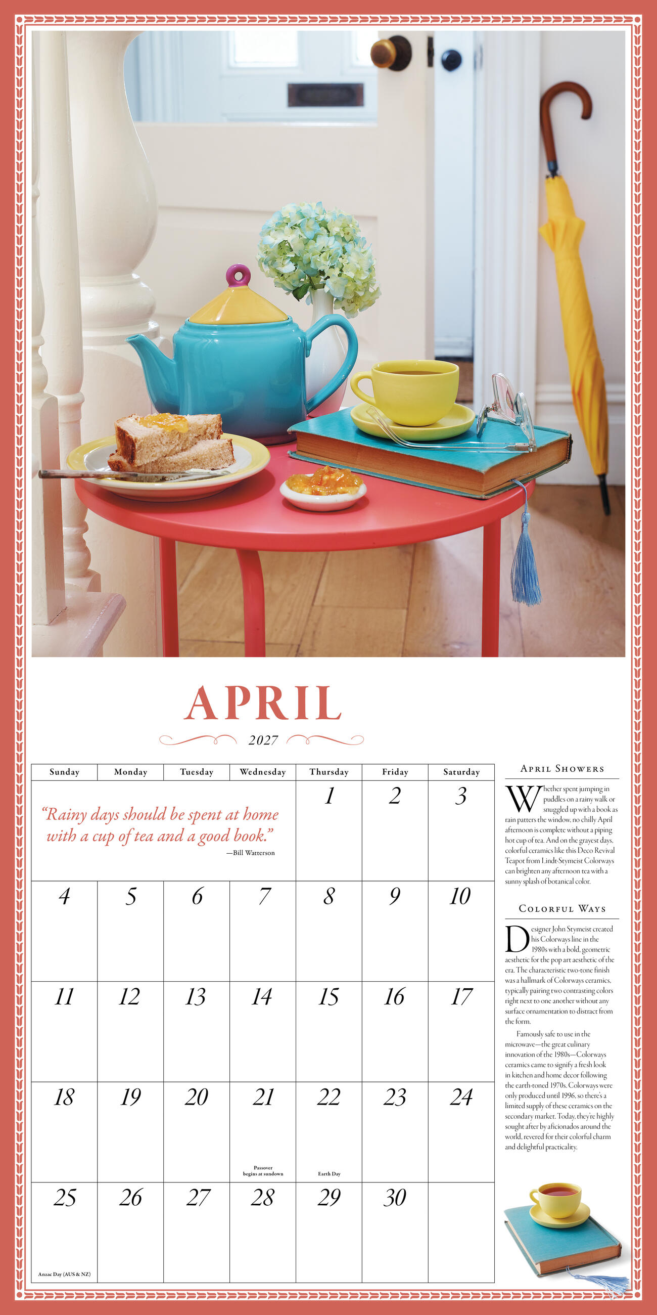 - TIME FOR TEA: This twelve-month tribute to the lovely ritual of afternoon tea features a unique vintage teapot on a gorgeously arranged table for every month of the year. Quotes and captions offer fascinating information.