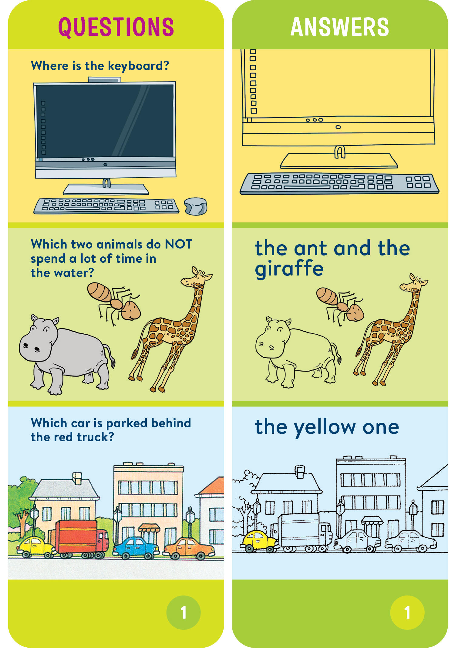 - Technology questions: Introduces children to the basics of computers and technology