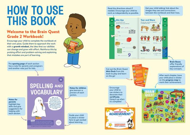 Loved by kids, teacher approved, and trusted by parents, Brain Quest Grade 2 Workbook reviews and reinforces what children are learning in the classroom in an instantly engaging, entertaining way. Each page is jam packed with fun activities, practice exercises, and games covering sentence building, addition and subtraction, fractions time and money, social studies, geography science, and much more.